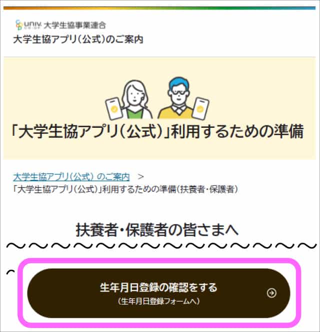 メール本文に記載されているURLをタップして「大学生協アプリ登録手順」サイトにアクセスしてください。