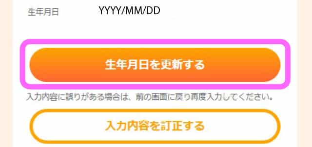 情報確認・修正画面が表示されましたら、保護者の生年月日を入力の上、「入力内容を確認する」をタップします。