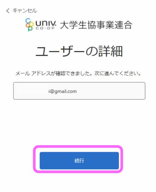 ※大学生協アプリの登録と同様のメールアドレスでの登録をおすすめします。