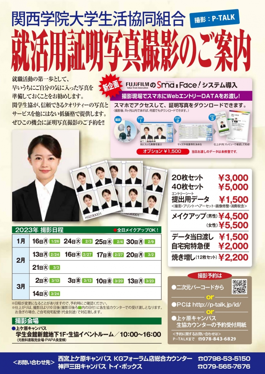 ※神戸三田キャンパス、西宮聖和キャンパスでの撮影はございません。 - 撮影時間:10:00~16:00