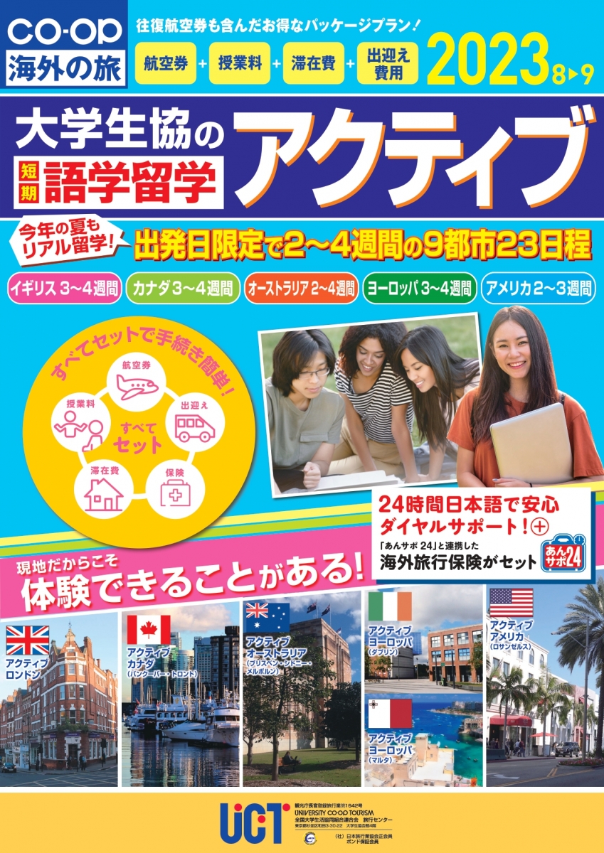 JTB、日本旅行など各旅行会社のパンフレットをご用意しています。大学生協「旅行Web直」でお得に予約OK