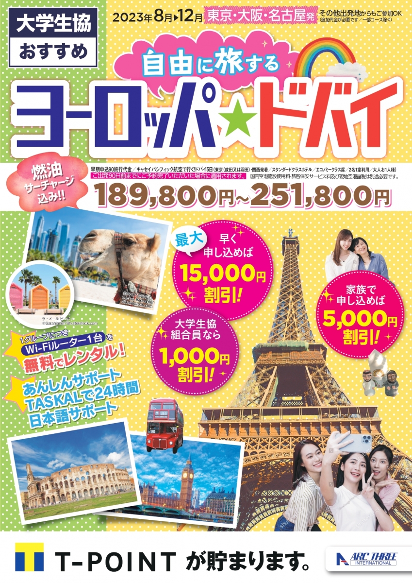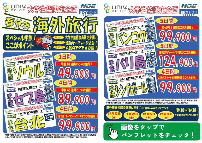 おすすめパッケージツアー・大学生協オリジナル企画などをご紹介します!