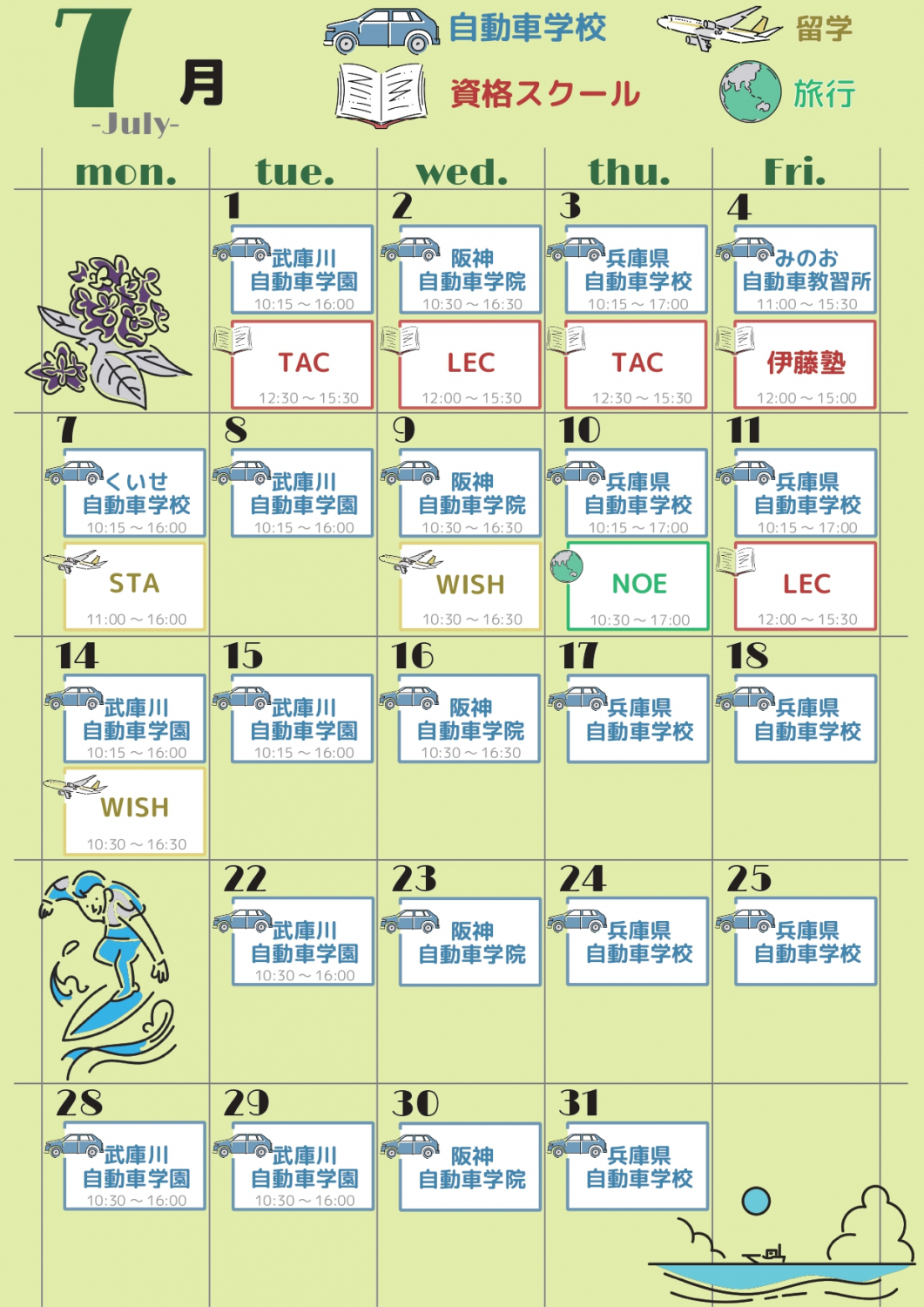 自動車学校は長期休暇中も含めて原則毎日、資格スクール・語学留学は授業シーズンに、日替わりで相談会を開催しています。参加無料・予約不要なので、どなたでもお気軽にご参加ください!