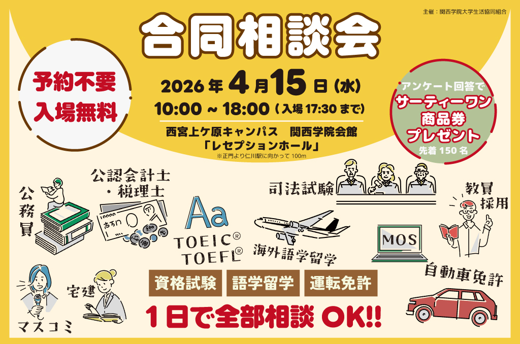 2026年4月15日(水)開催 合同相談会のお知らせ