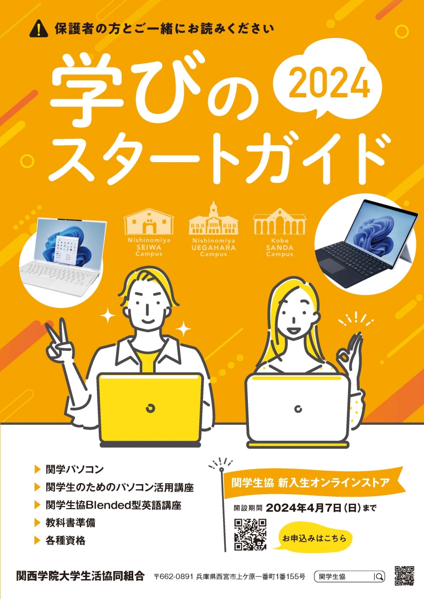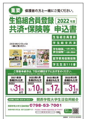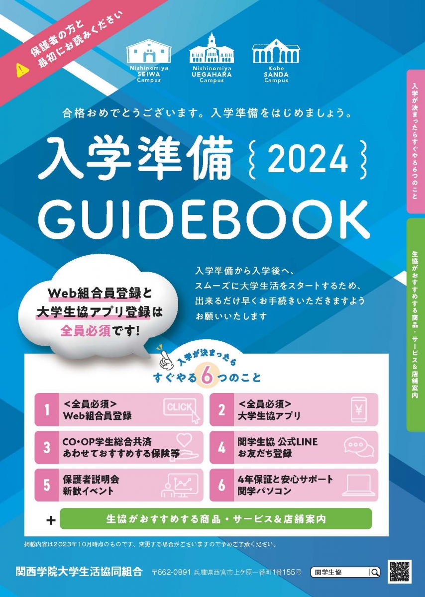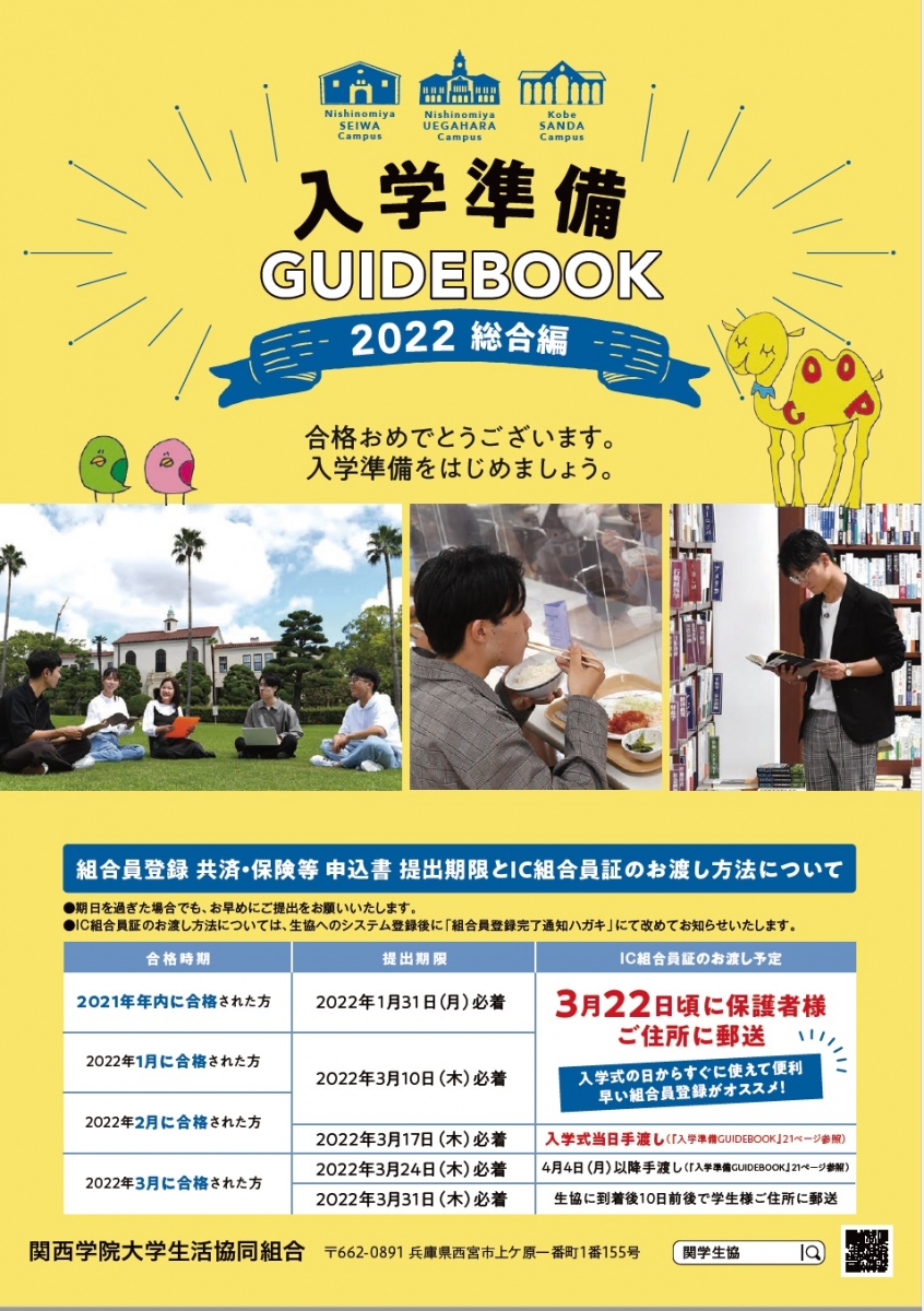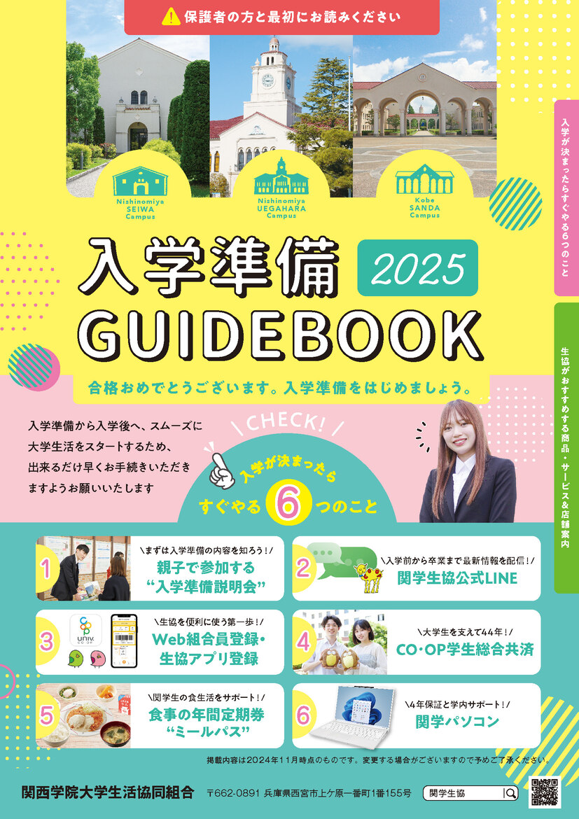 関西学院大学・関西学院短期大学に合格され方には、生協から「入学準備応援パック」をお送りしております。