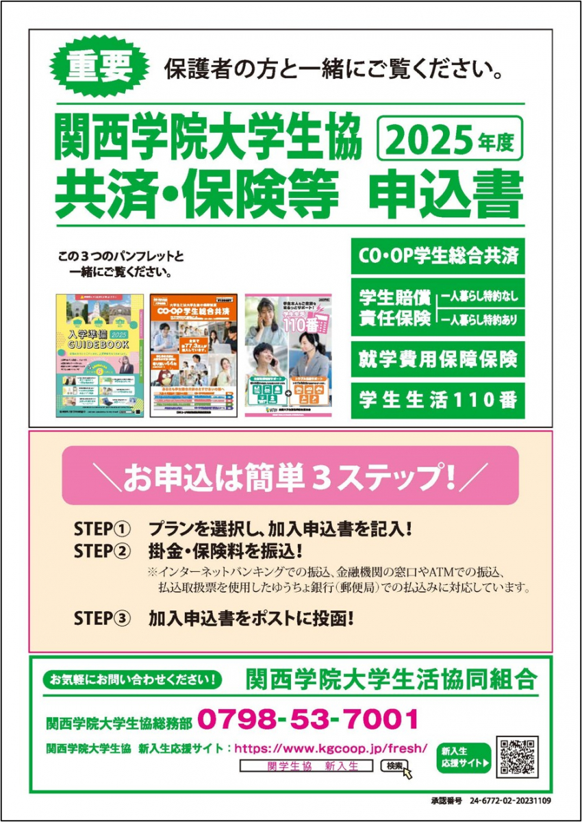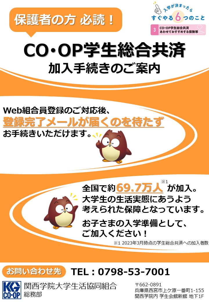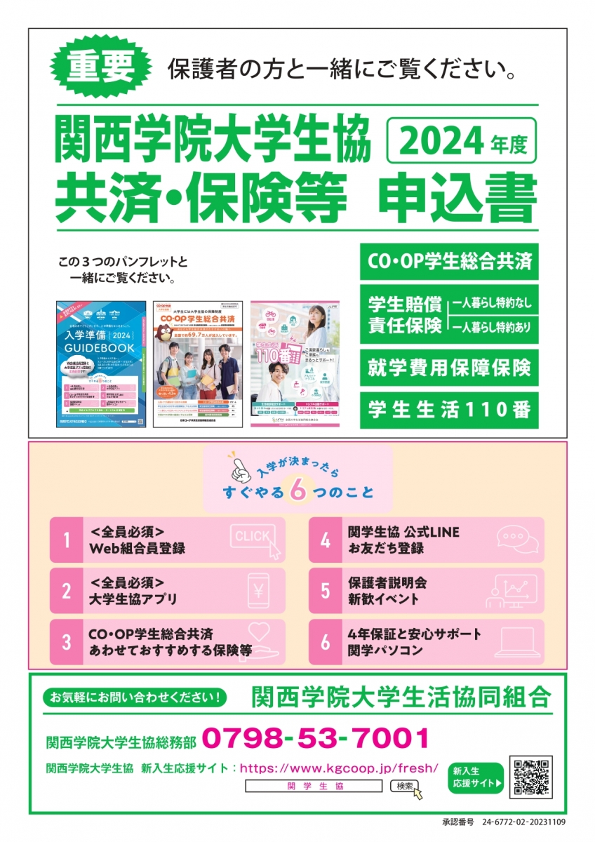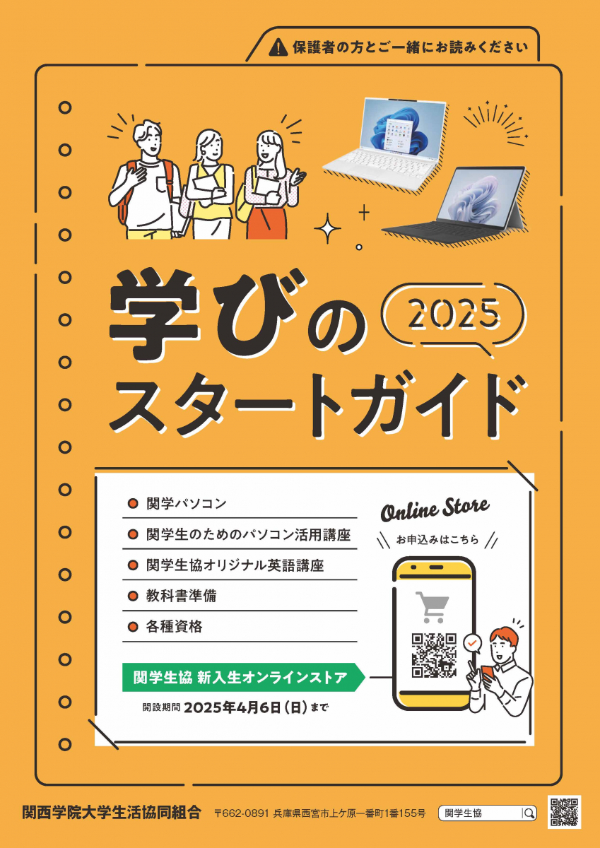 関西学院大学・関西学院短期大学に合格され方には、生協から「入学準備応援パック」をお送りしております。