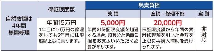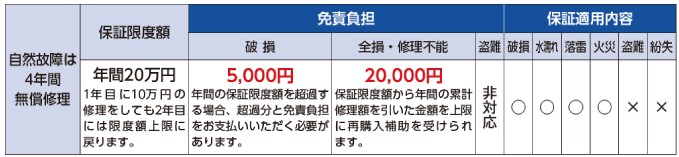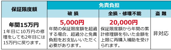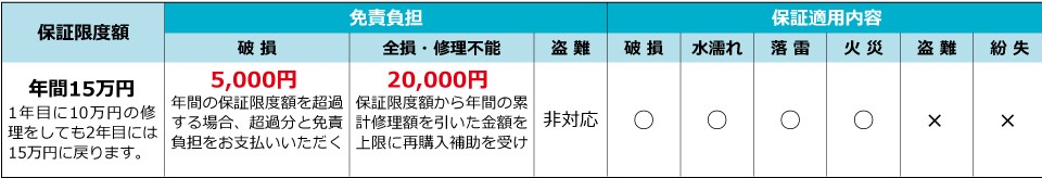 ※ 「修理不能の場合」あるいは「修理費用が補償限度額を超過した場合」は全損扱いとし、補償限度額から免責金2,000円を差し引いた額を上限に、iPadを買い替えるための再購入補助制度がご利用いただけます。