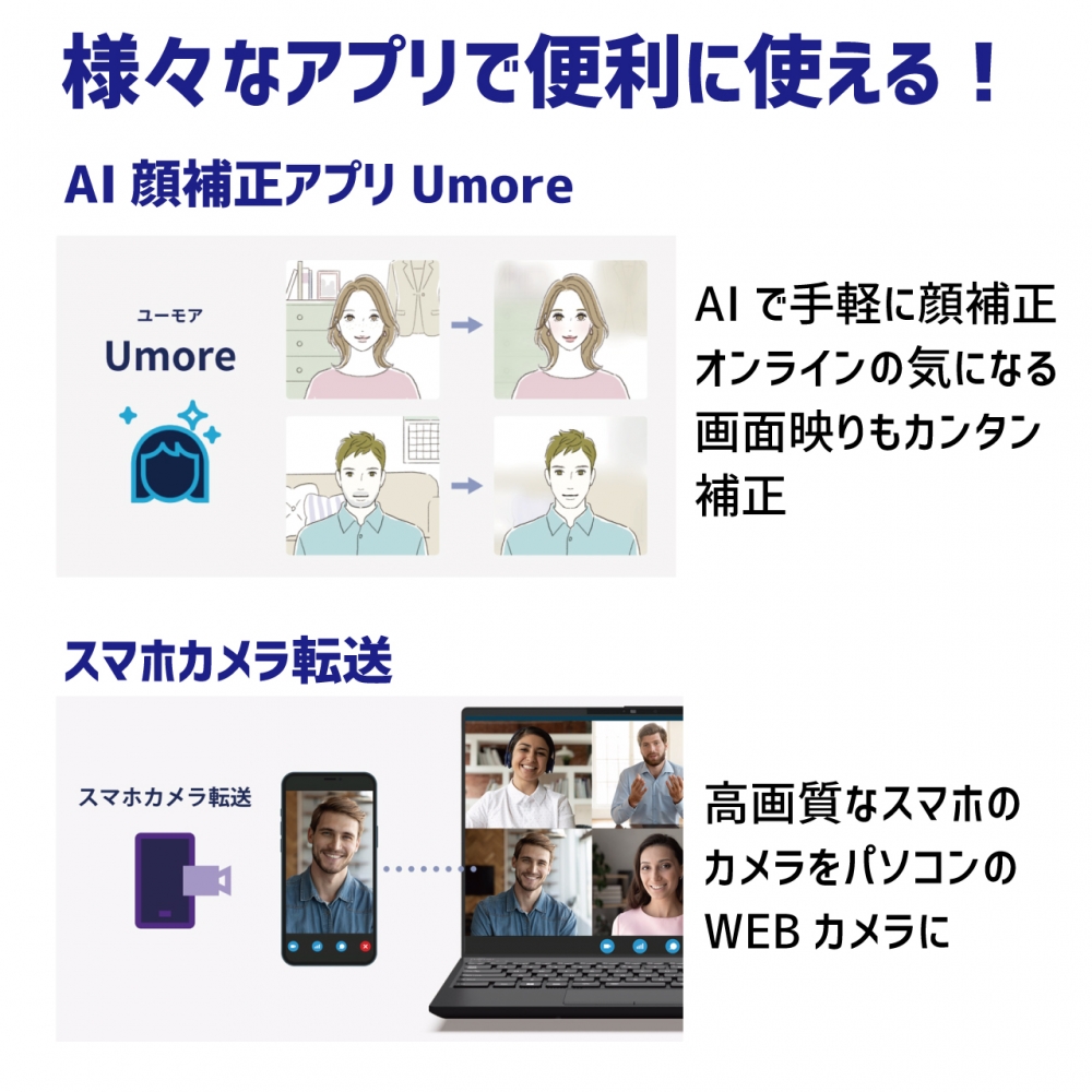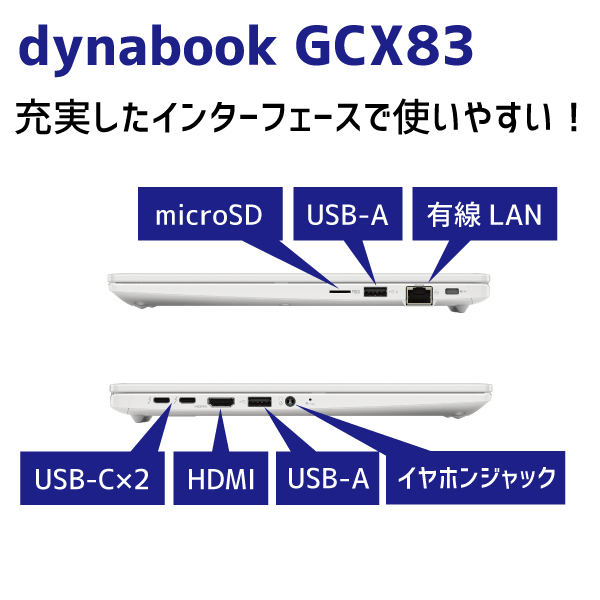 インターフェース:USB3.2(Gen1)×2、USB Type-C(USB3.2Gen2 )×2、HDMI、MicroSD、Webカメラ(約200万画素)・顔認証センサー