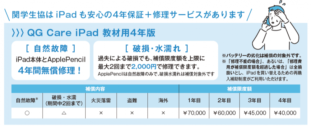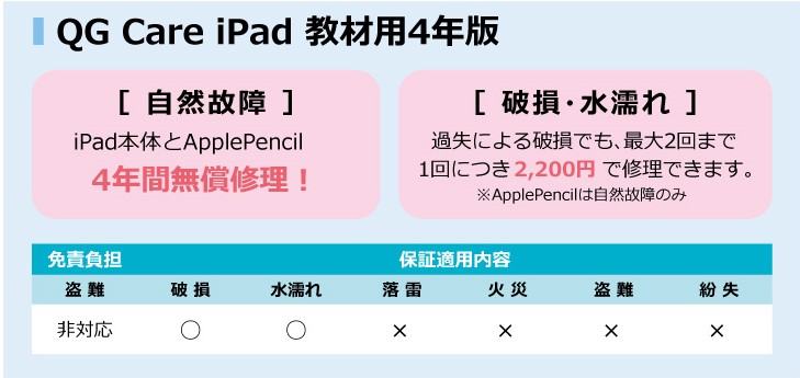 ◆iPad Airも4年保証付帯(QG-Care iPad教材用4年版)