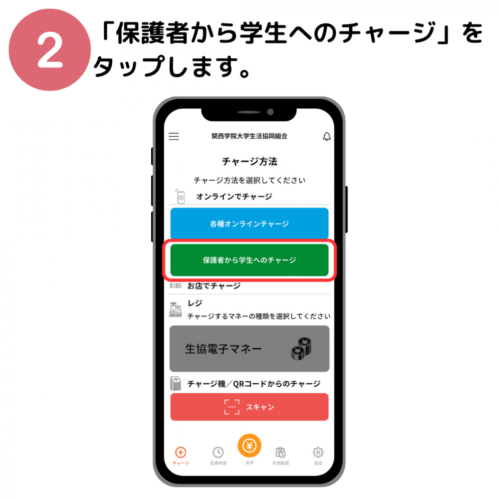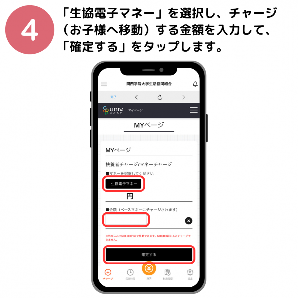 保護者の電子マネーから、お子様の電子マネーへの移動は完了です。