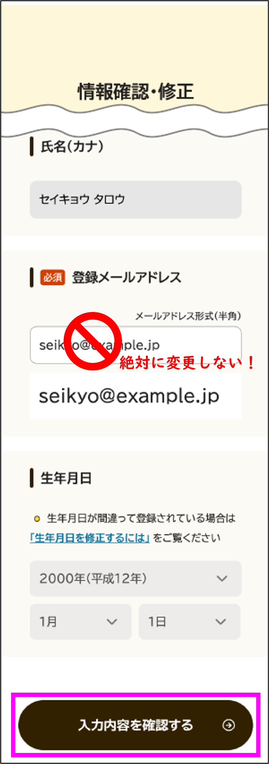 【注意】登録メールアドレスの変更は絶対に行わないでください。