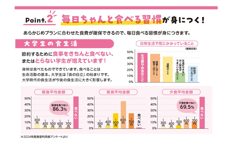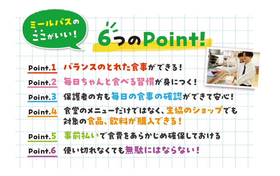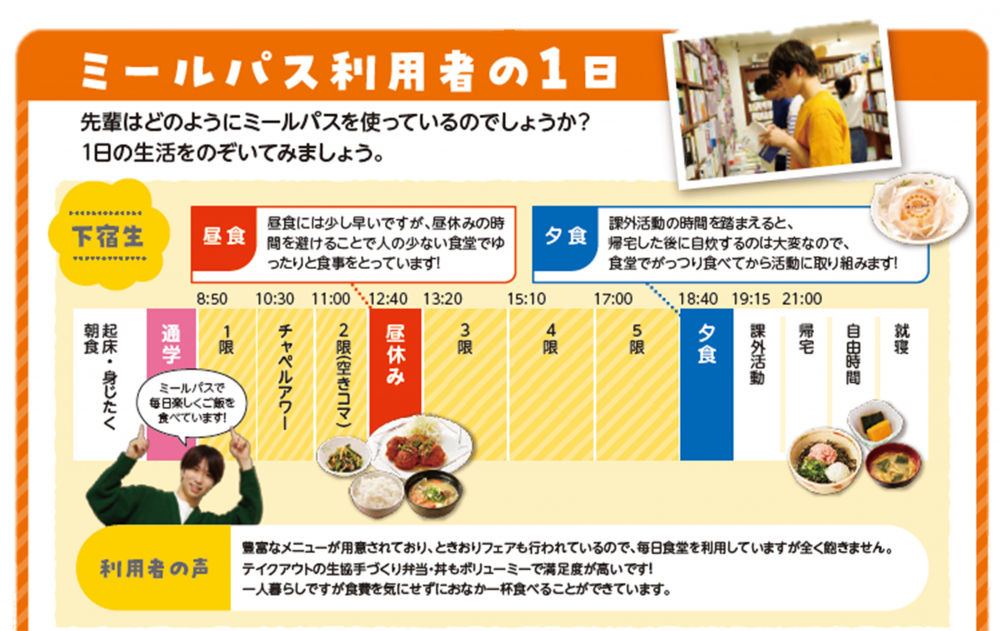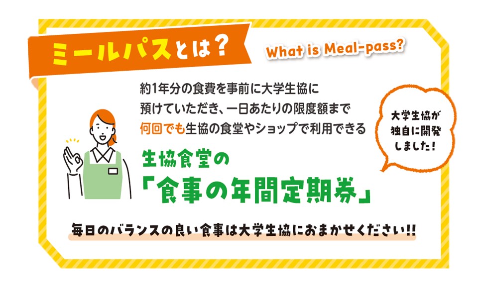 ミールパスは「健康」「安心」「便利」をまとめて叶える新生活の味方。食事を整えて、キャンパスライフを充実させましょう!