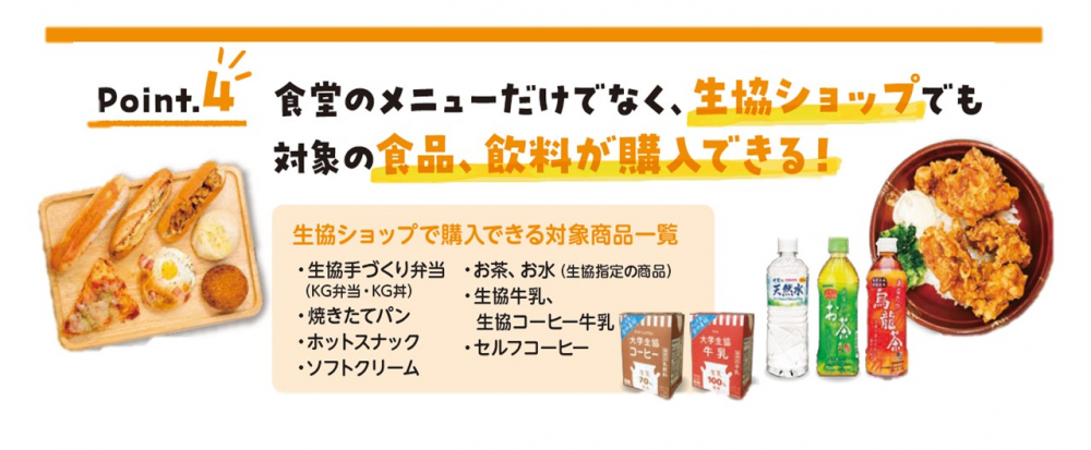 ポイント4:食堂メニューだけでなく生協のショップでも食品・飲料が購入できる