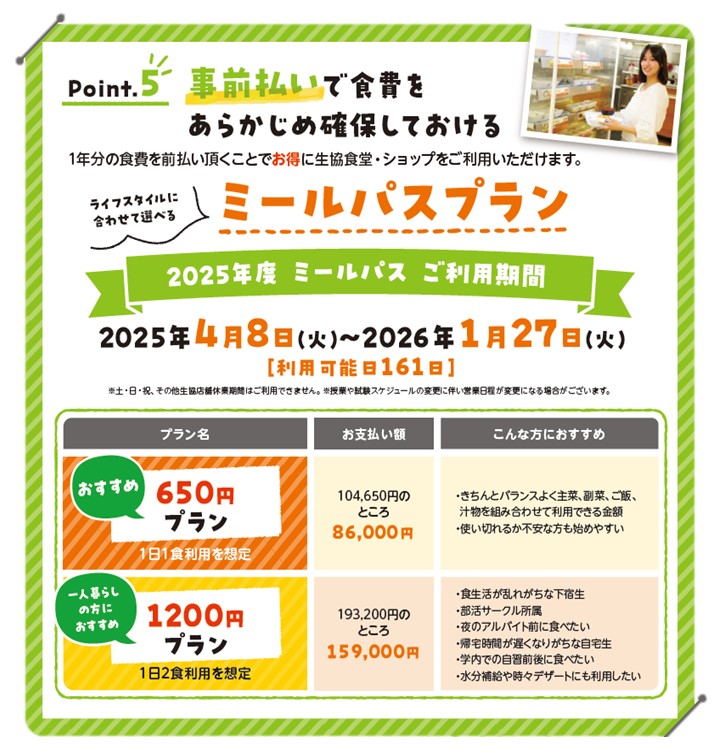 1年分の食費を前払いいただくことでお得に生協食堂・ショップをご利用いただけます!