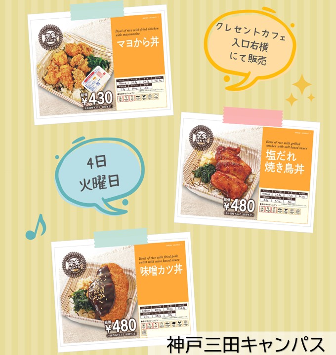 神戸三田キャンパスでも色々な弁当や丼を販売!