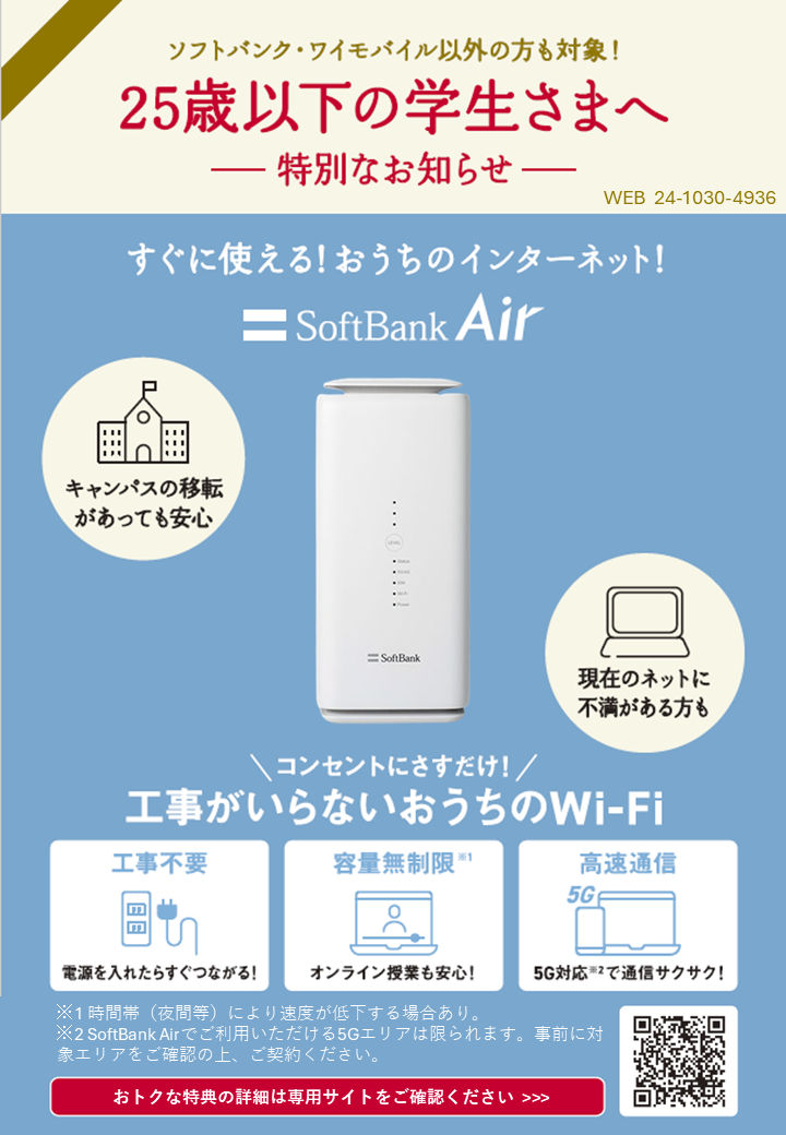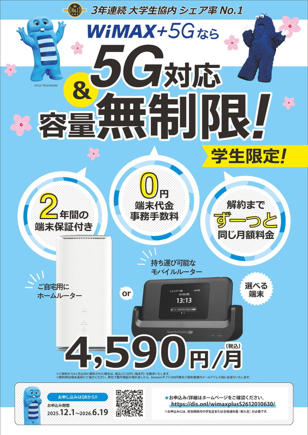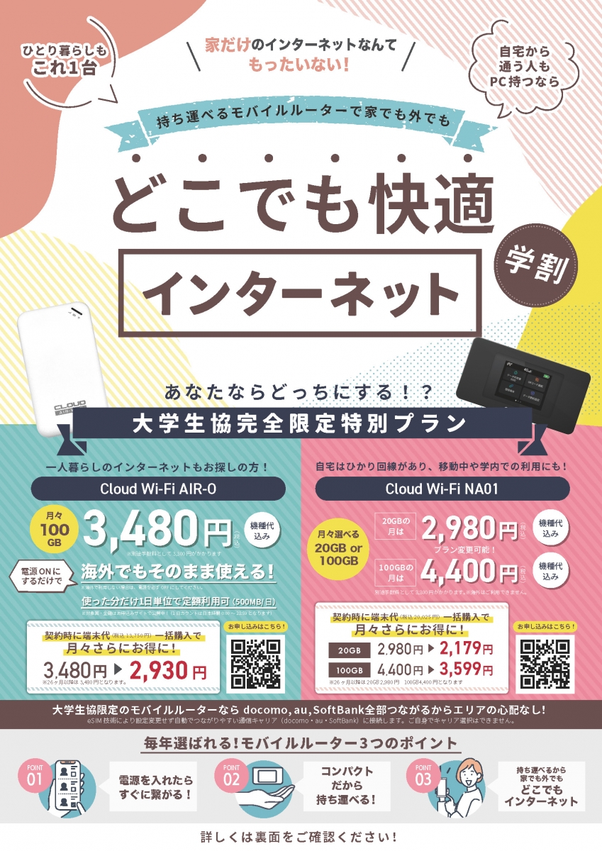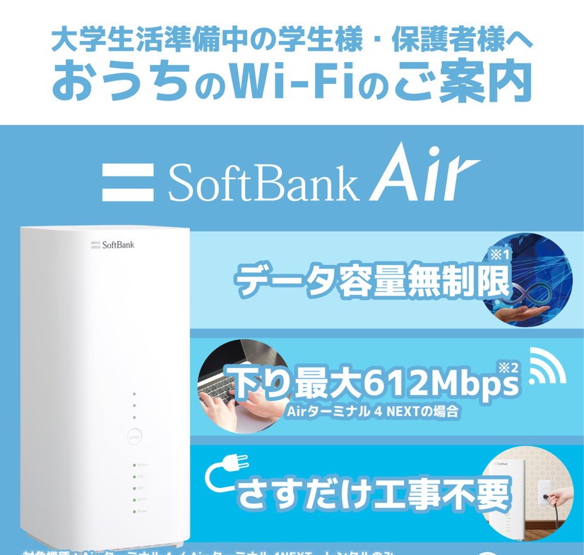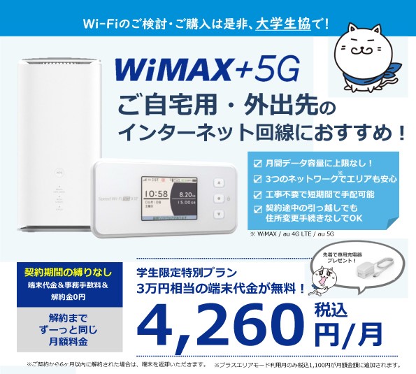 大学生にはパソコンだけでなくインターネット環境も必須です。