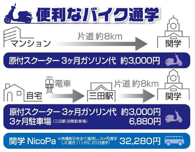 関西学院大学神戸三田キャンパスは駅から離れた場所にあり、バスが運行していますが、バイクがあれば通学がますます便利になります!