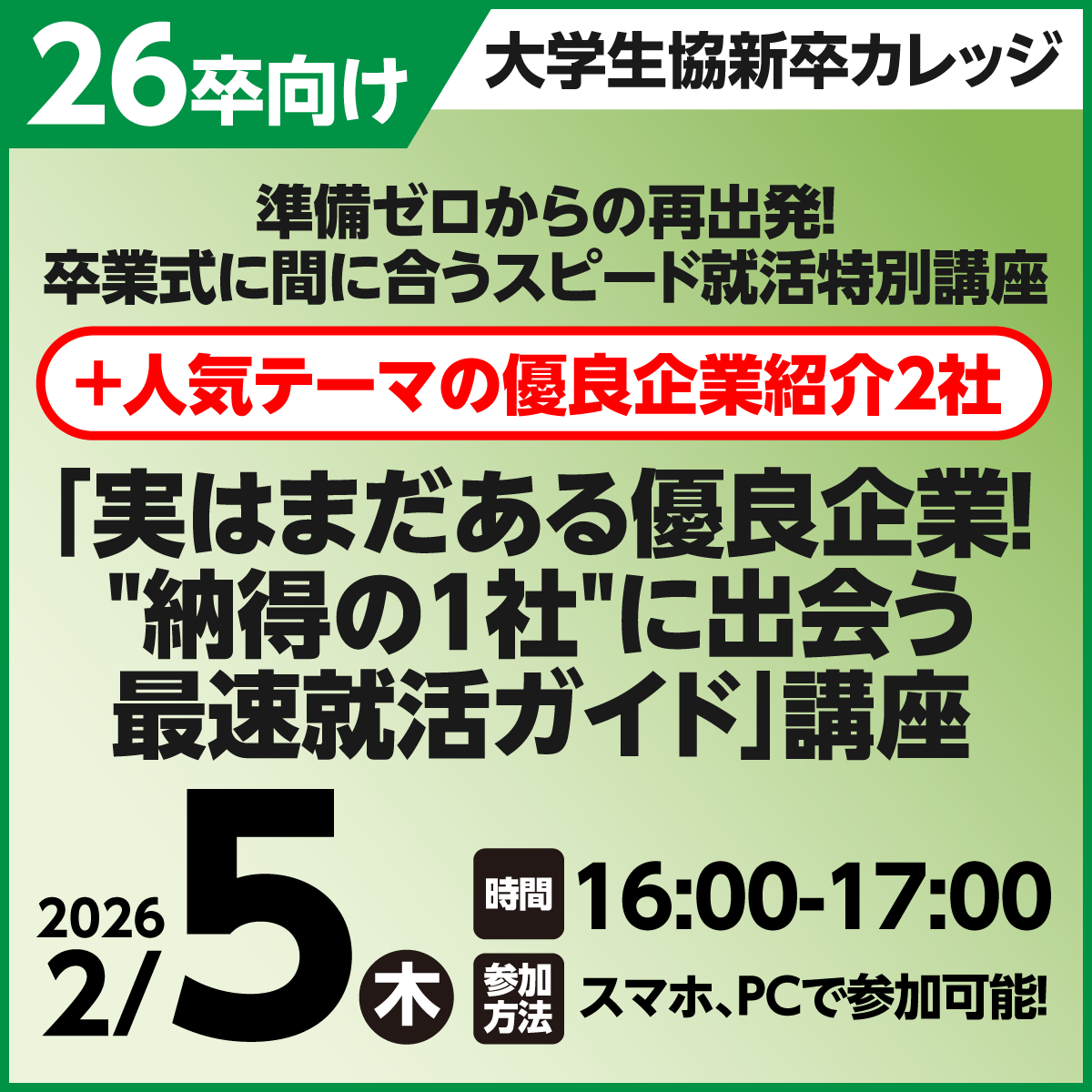 26年卒生 就職先をあと少し吟味したい、最後の一歩を踏み込みたい方はぜひご参加ください・