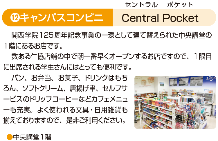 ⑫ 中央講堂コンビニ Central Pocket