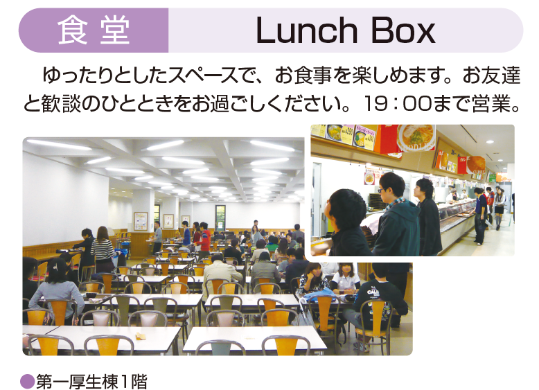お弁当・パン・飲み物・お菓子などを揃え、気軽にご利用いただけます。社会学部と法学部の学生さんには近くて便利です。