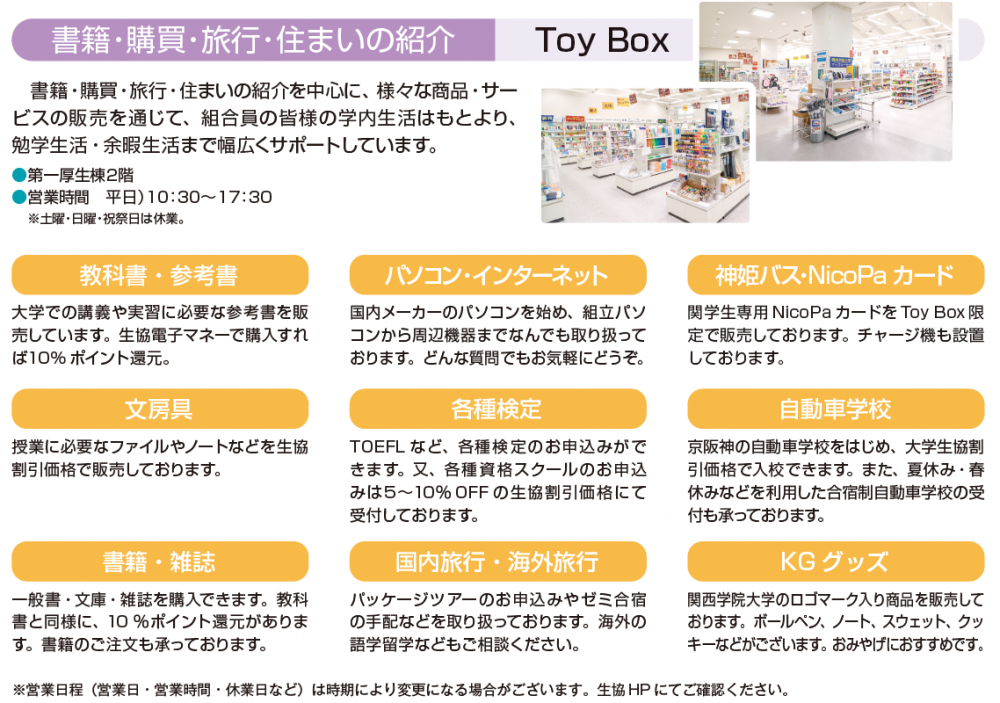 西宮上ケ原キャンパス 生協店舗案内