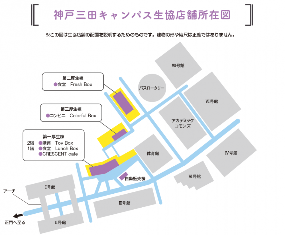 神戸三田キャンパス生協店舗所在図