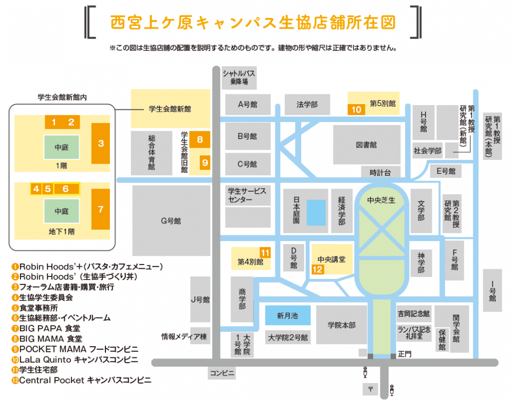 西宮上ケ原キャンパス生協店舗所在図
