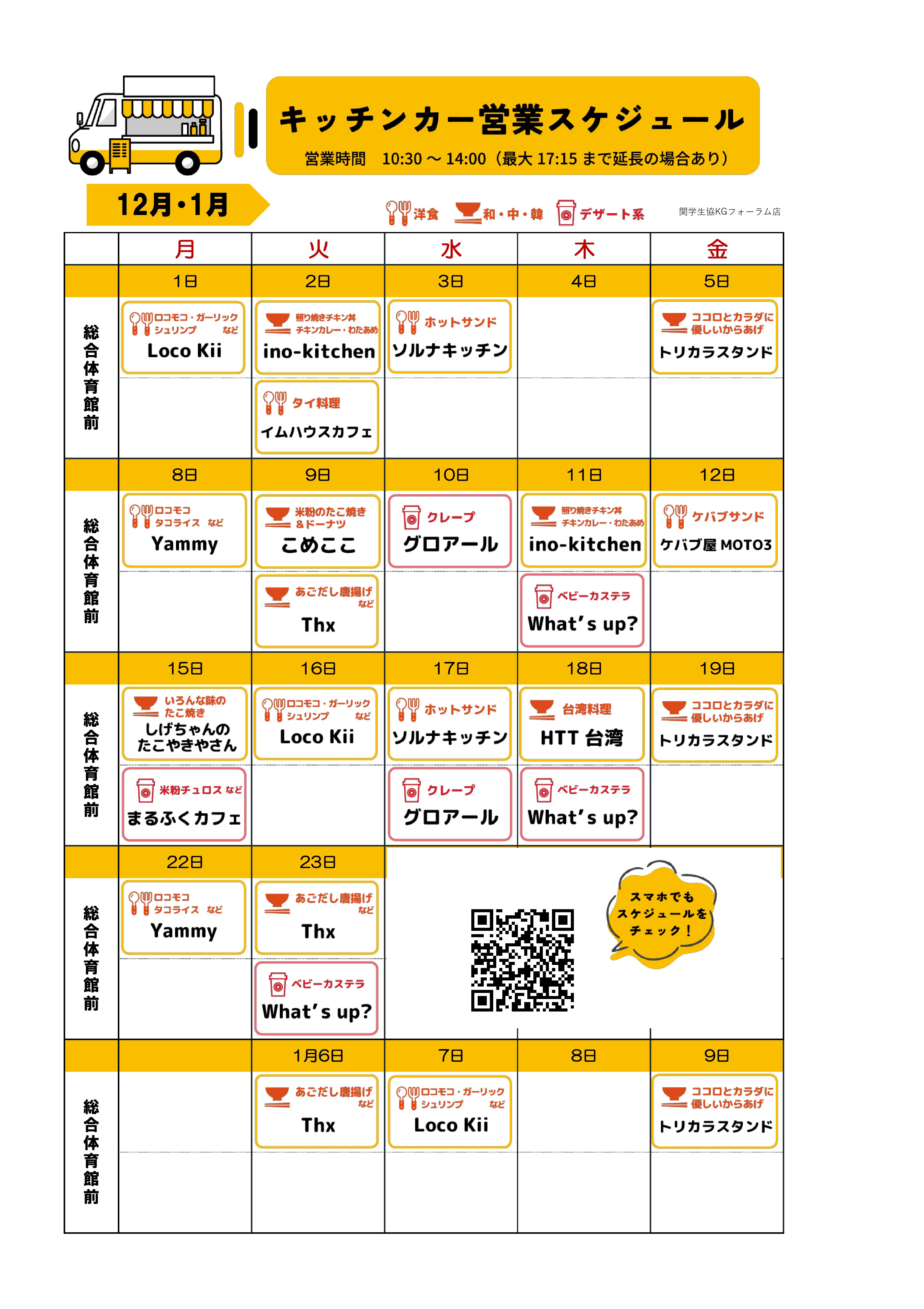KGフォーラム店にかかる店舗イベント一覧です。ご来店時にご参照ください!(クリックで拡大)