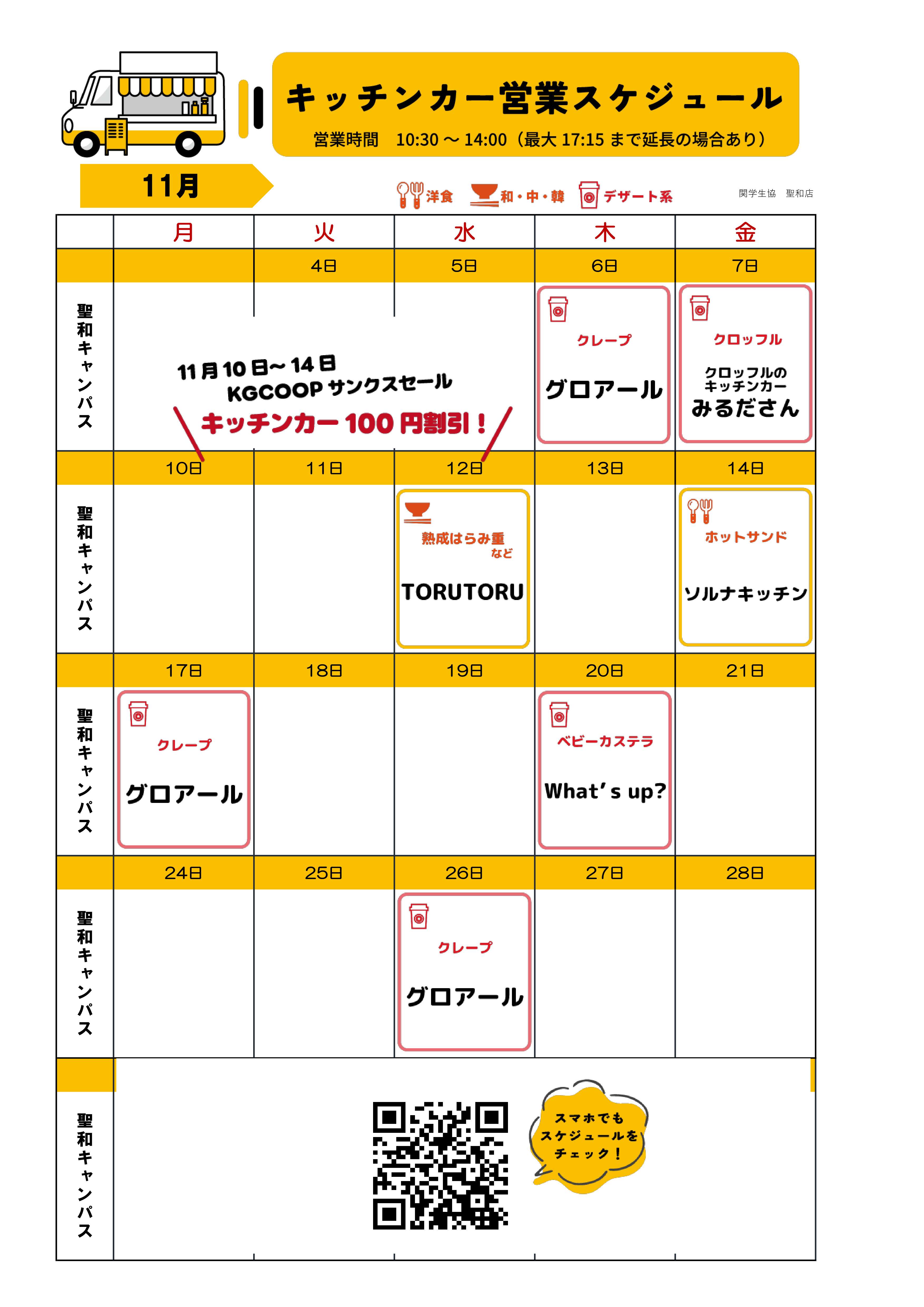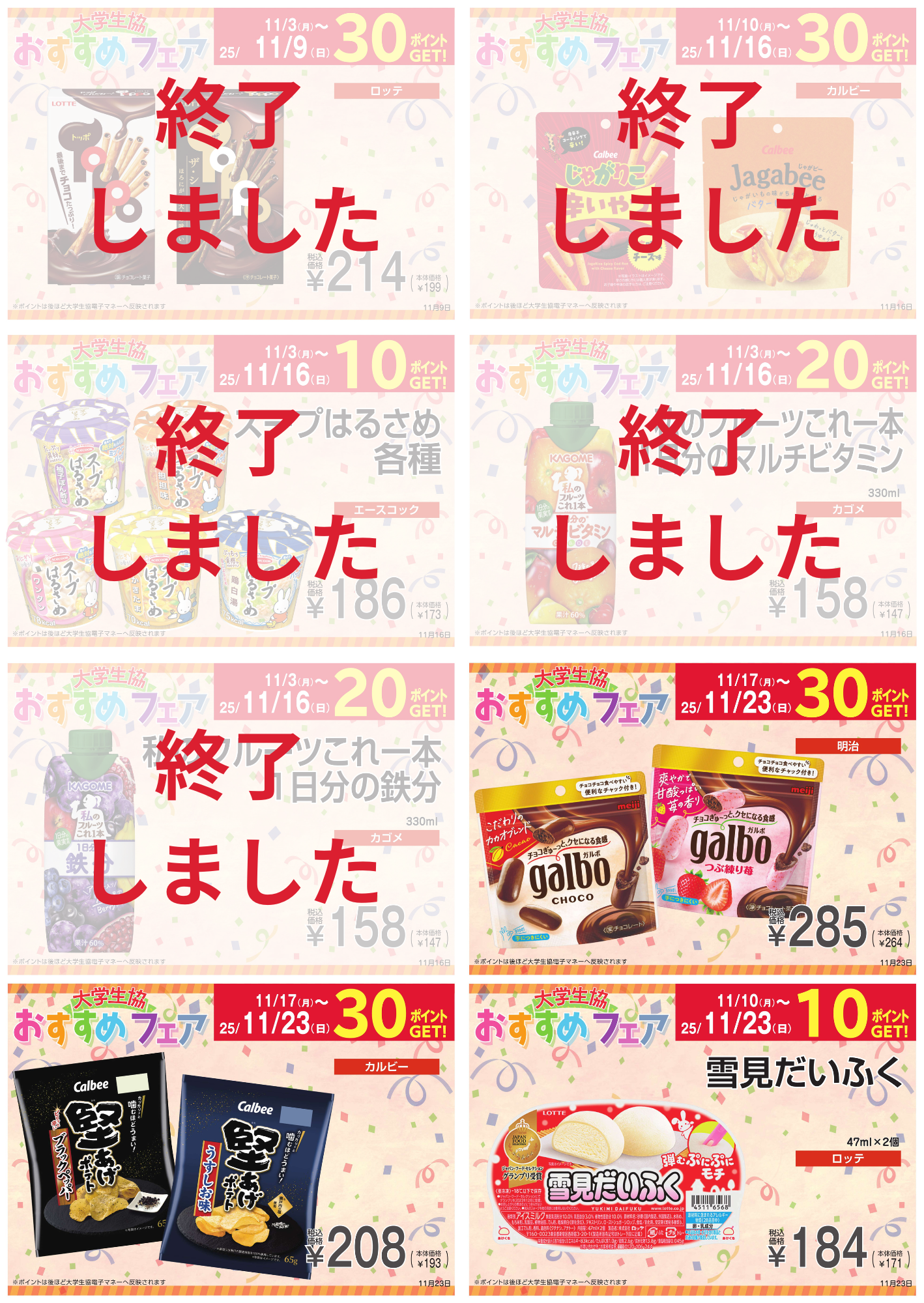 西宮上ケ原・聖和キャンパスの生協ショップ各店と、B号館・F号館のロビー(昼休み限定)で販売中!