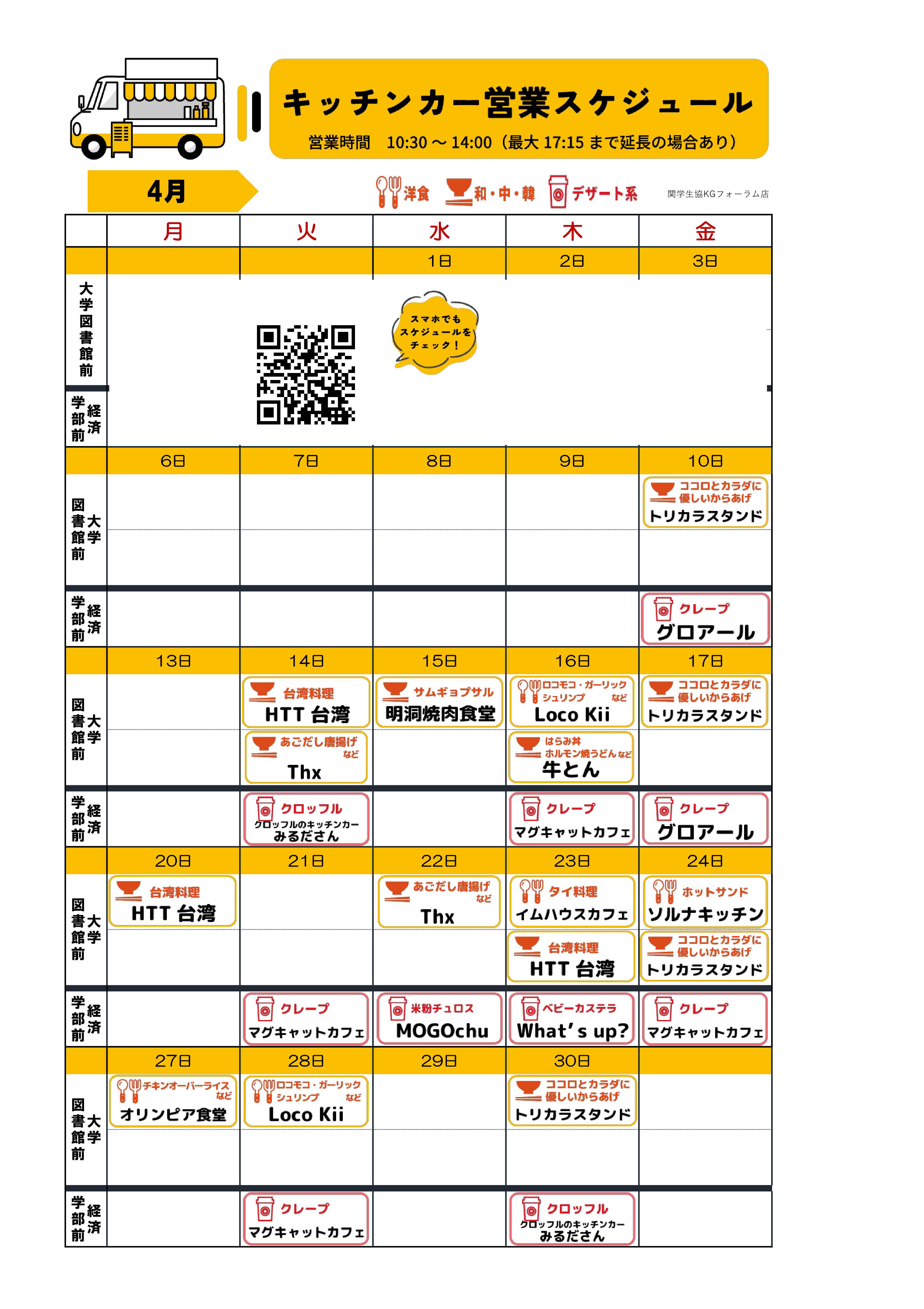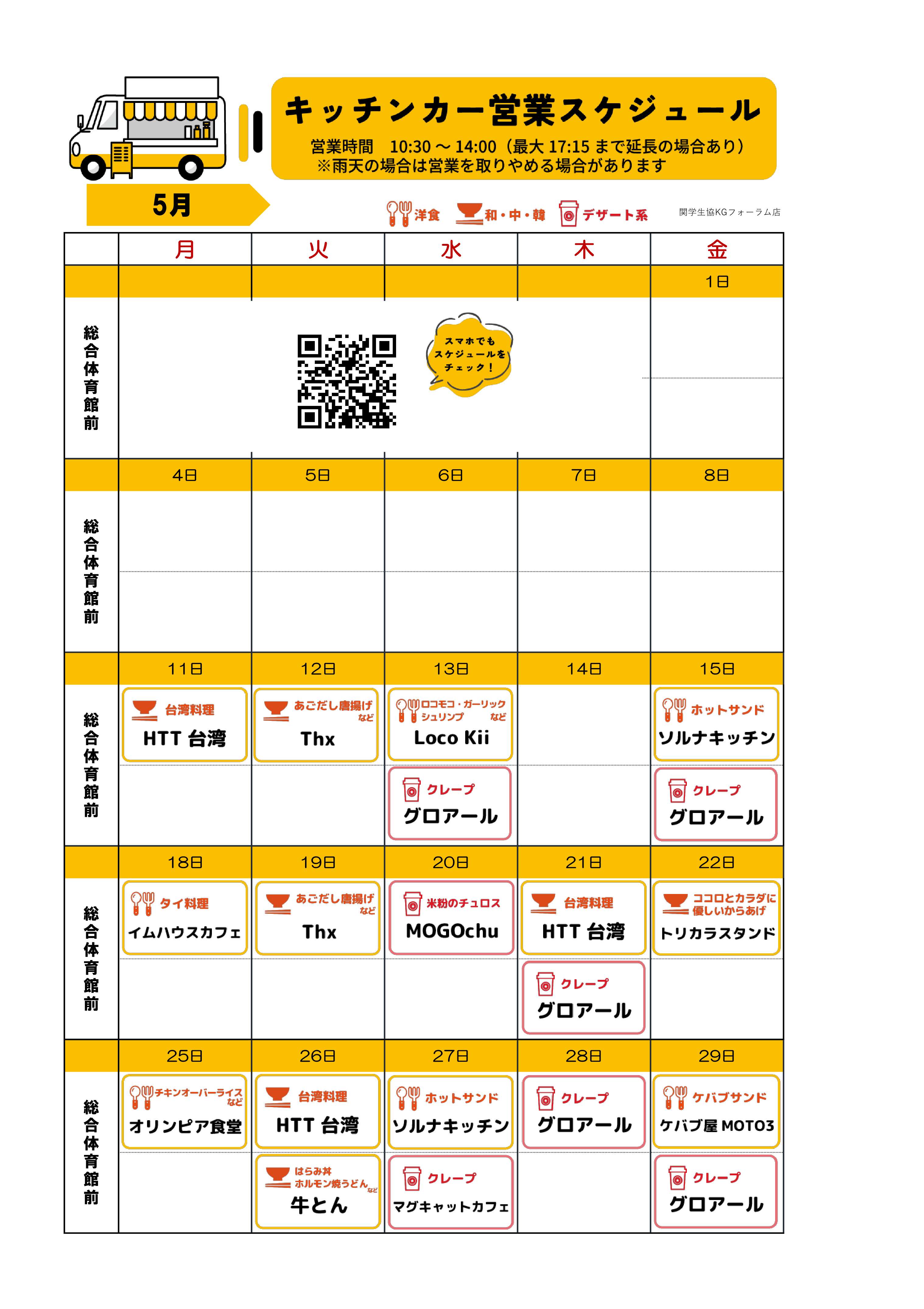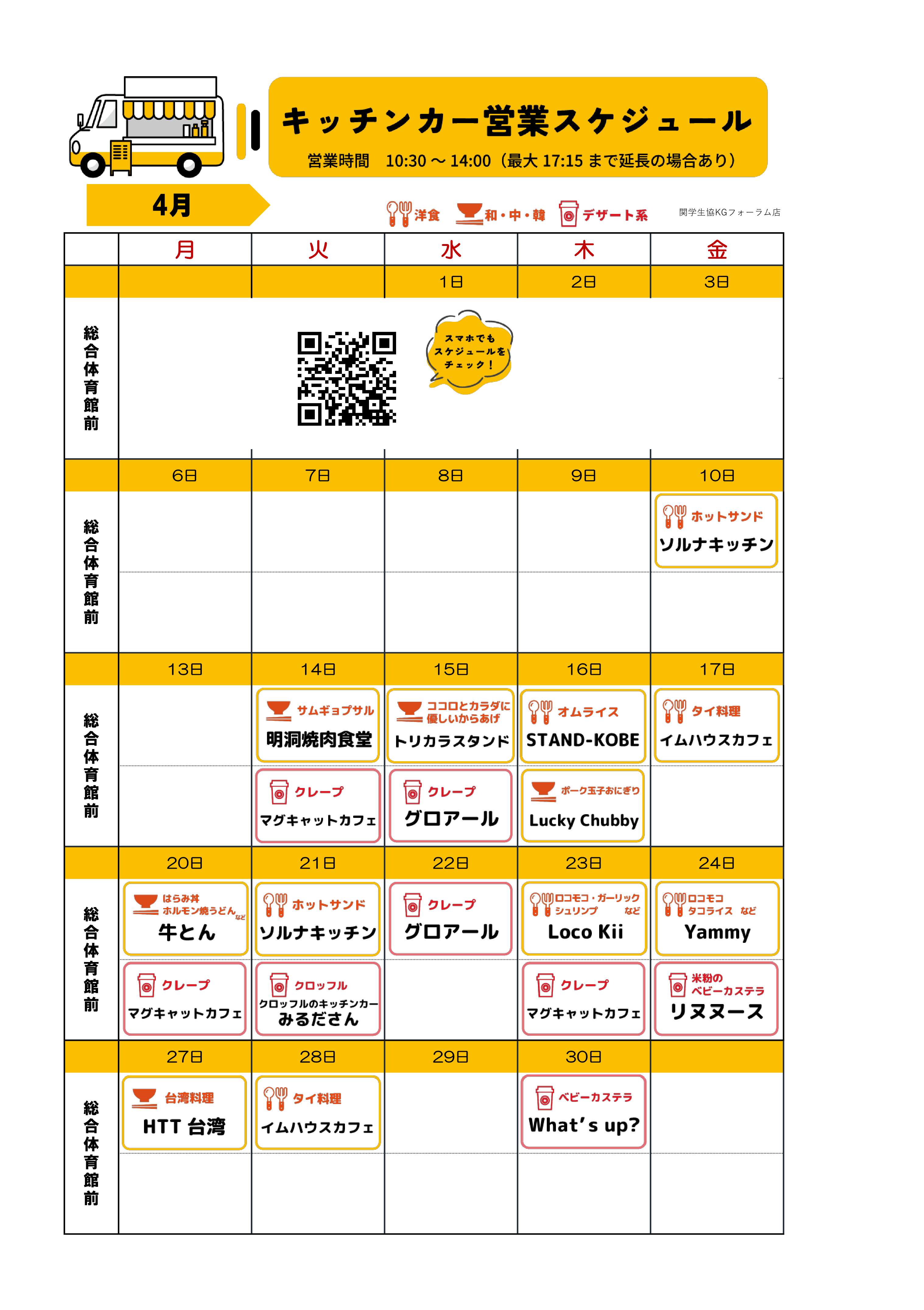 キッチンカー販売スケジュール