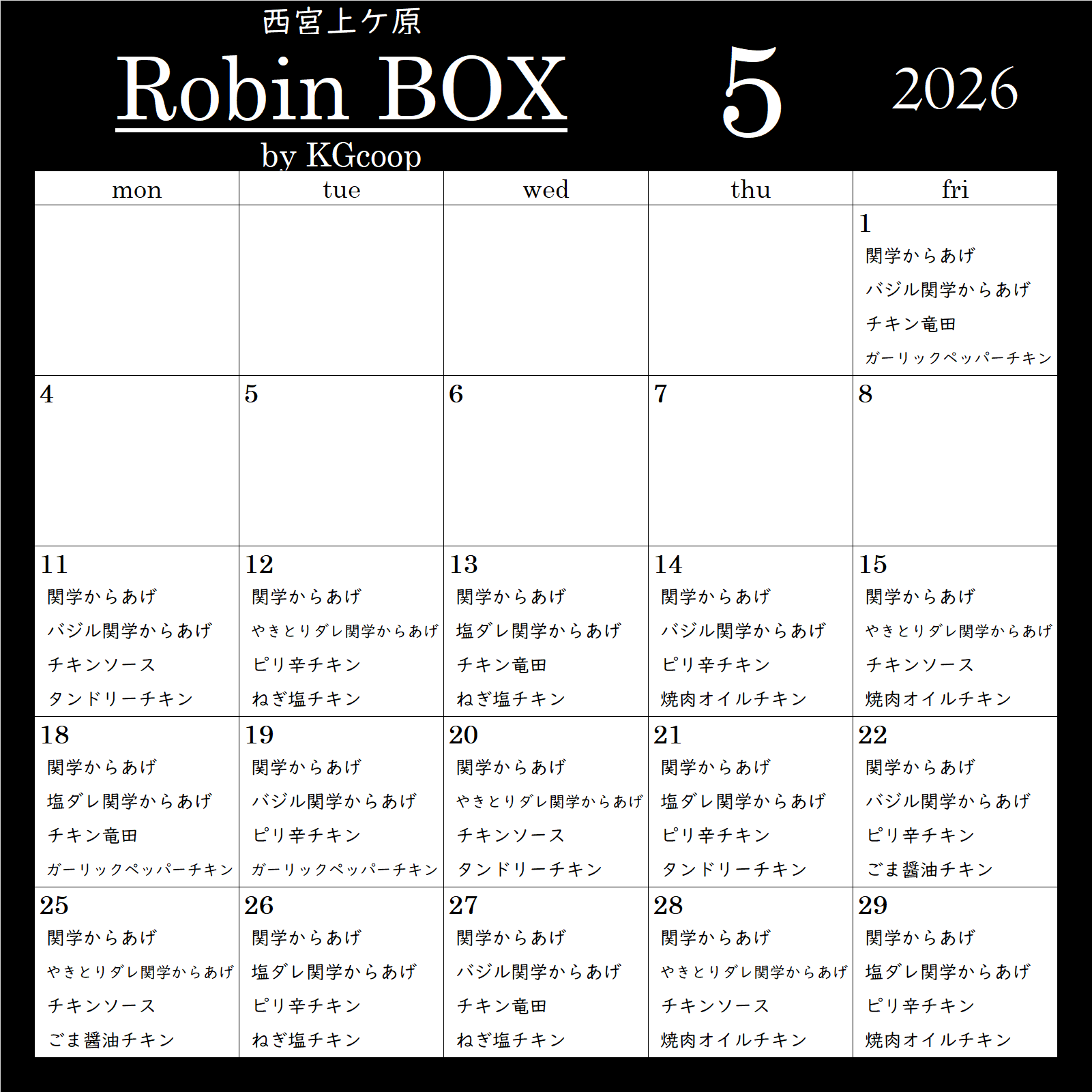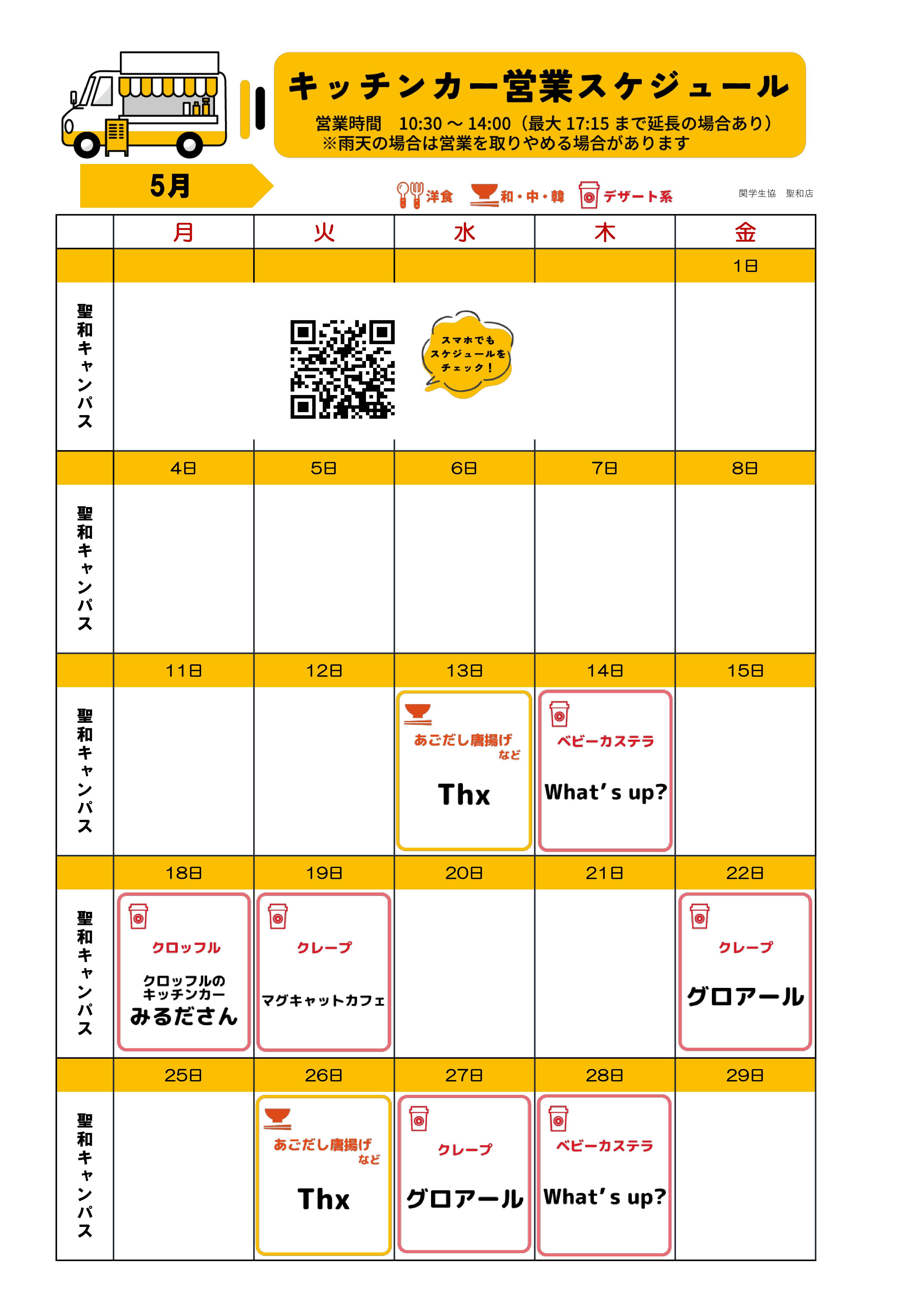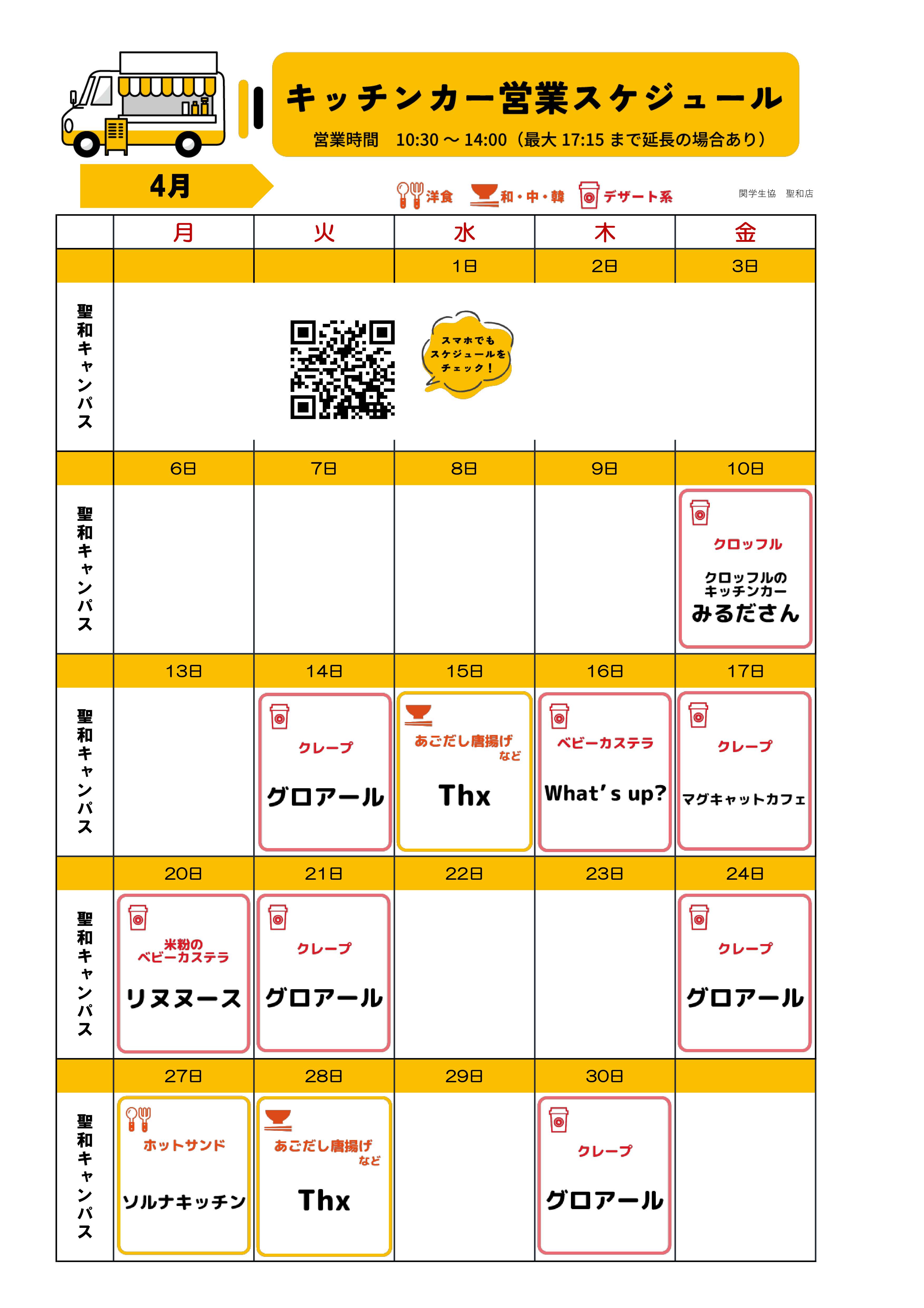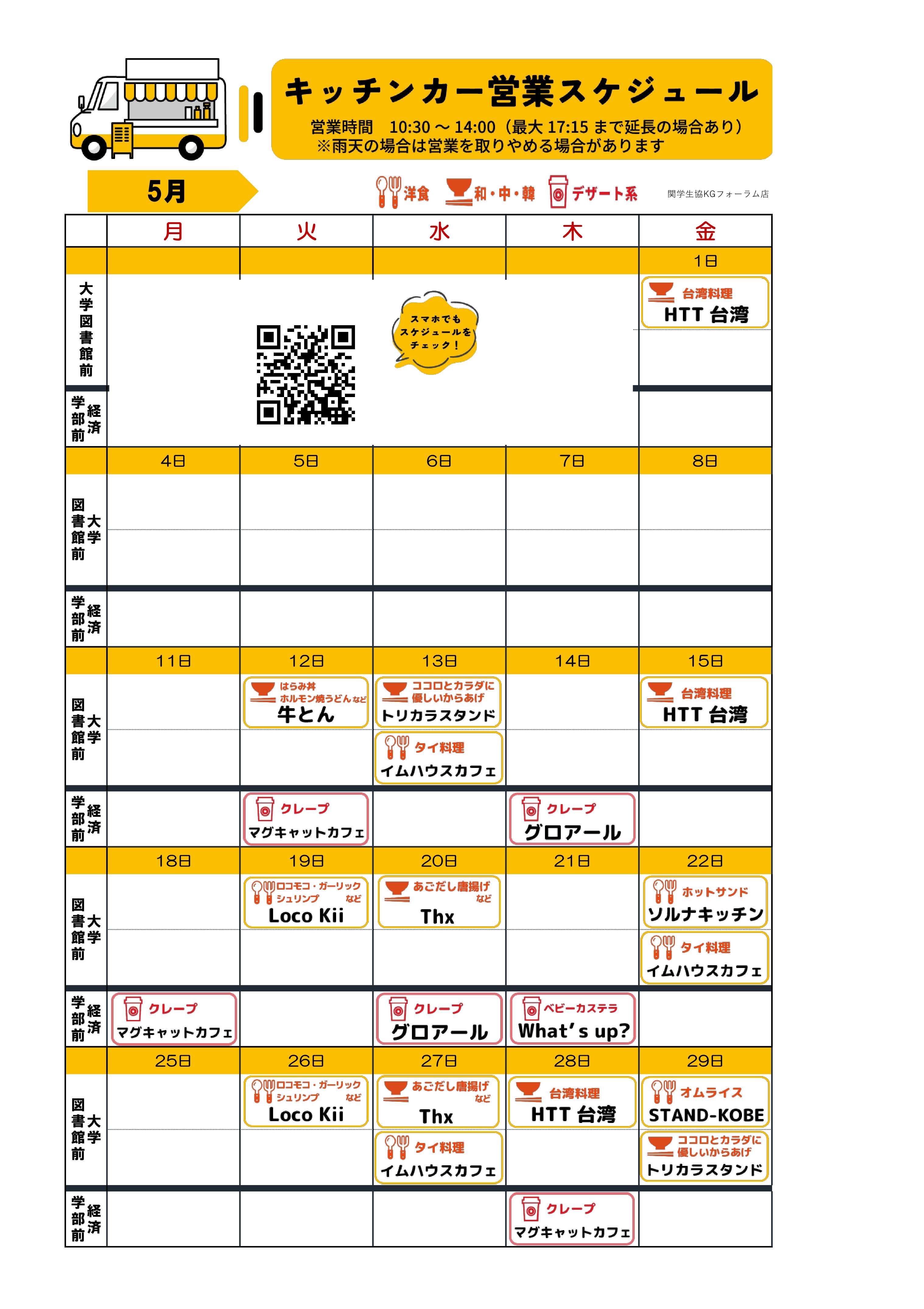キッチンカー販売スケジュール