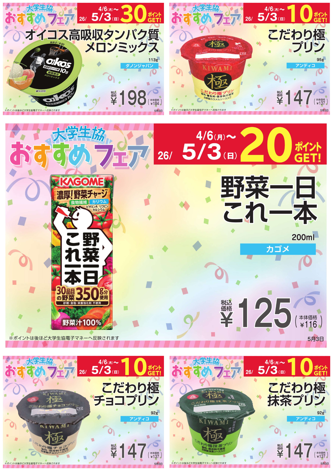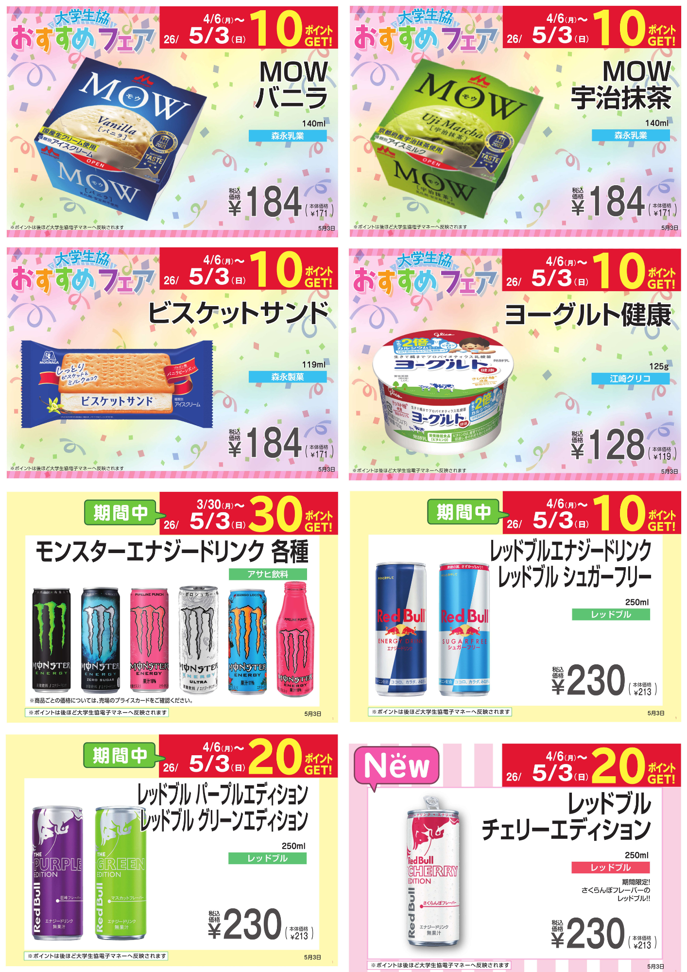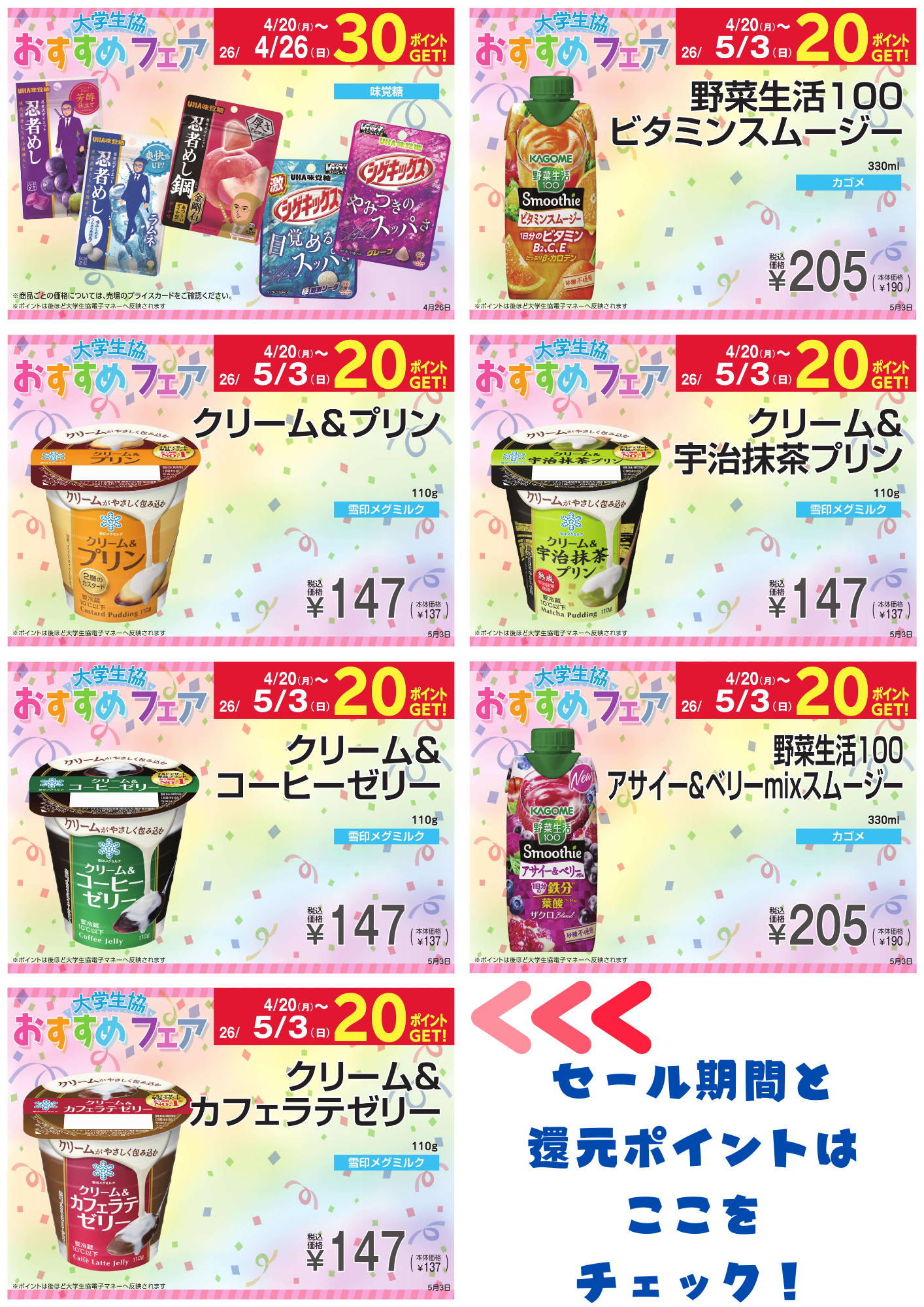 ※ ポイントGETは大学生協電子マネーで決済の場合に限ります。