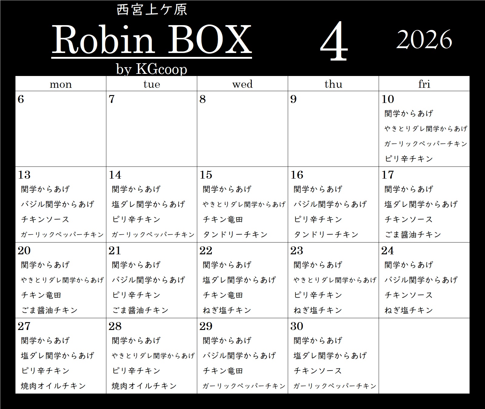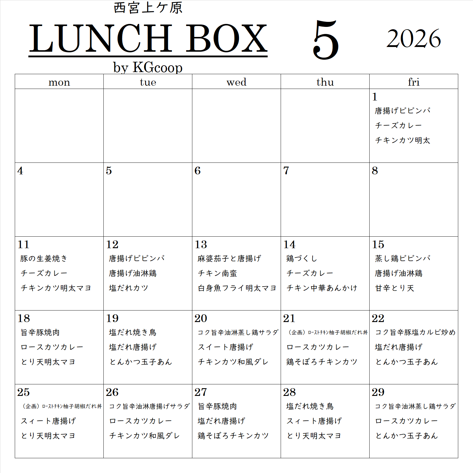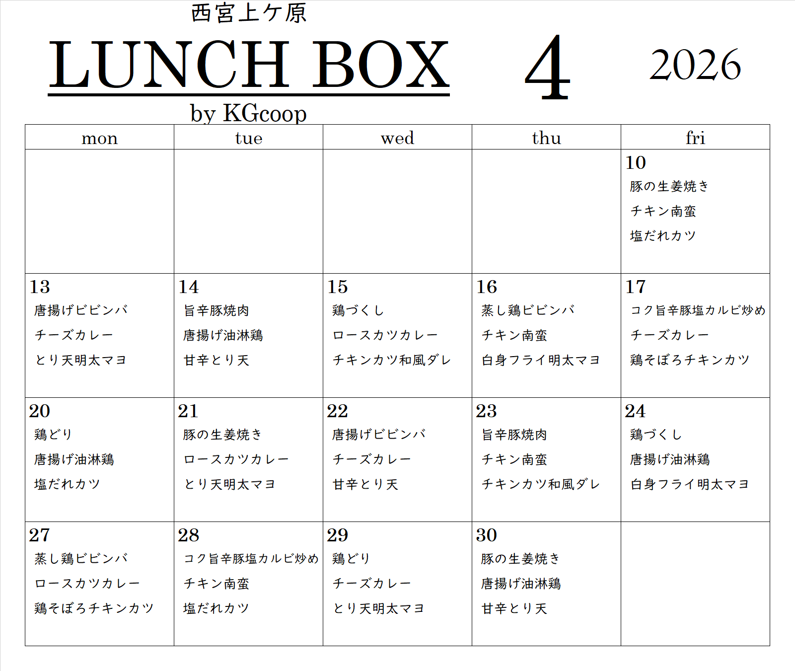 生協手づくり弁当・丼 販売スケジュール