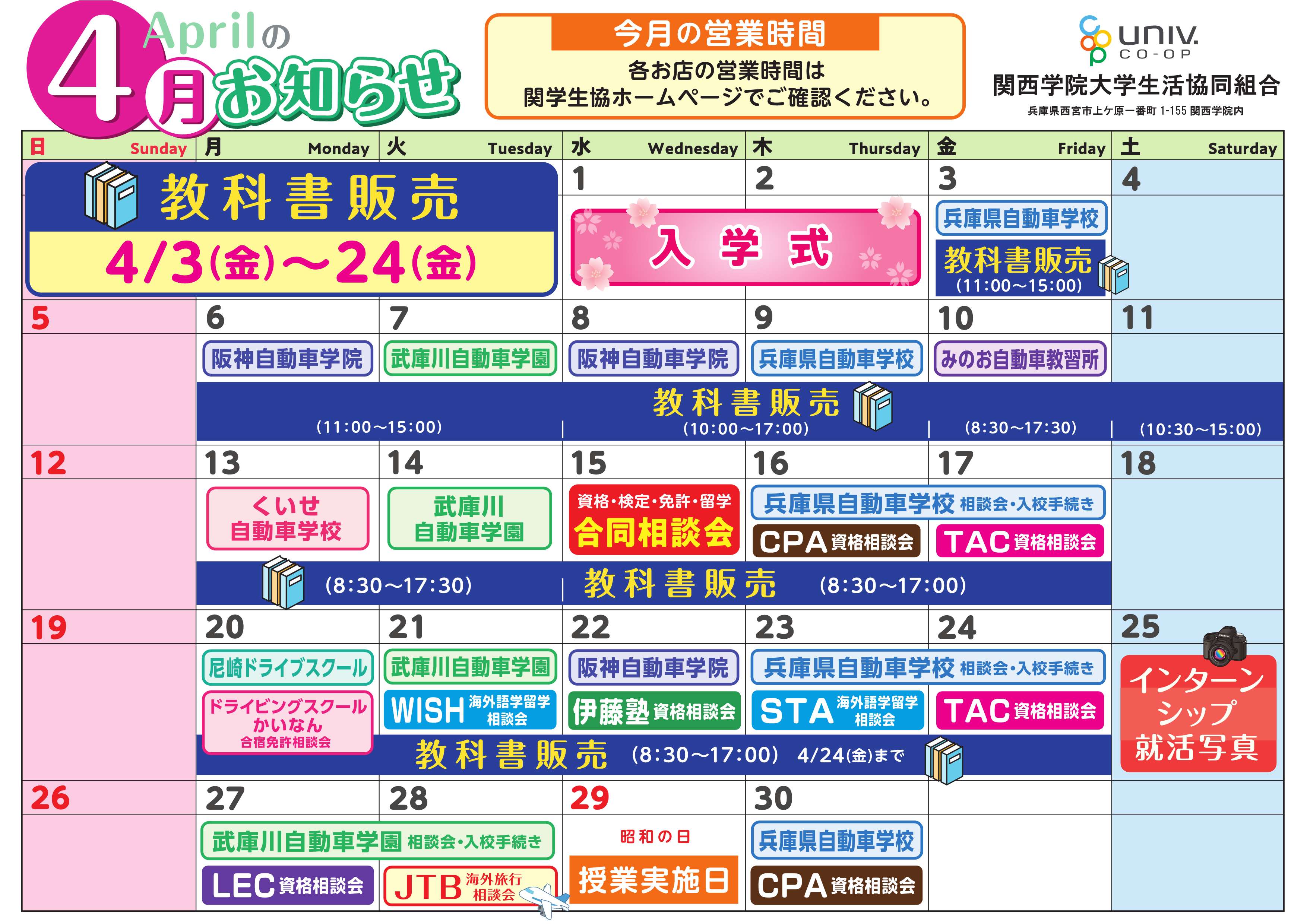 - 西宮上ケ原の生協ショップ各店と、B号館・F号館のロビー(授業実施日の昼休み限定)で販売中!
