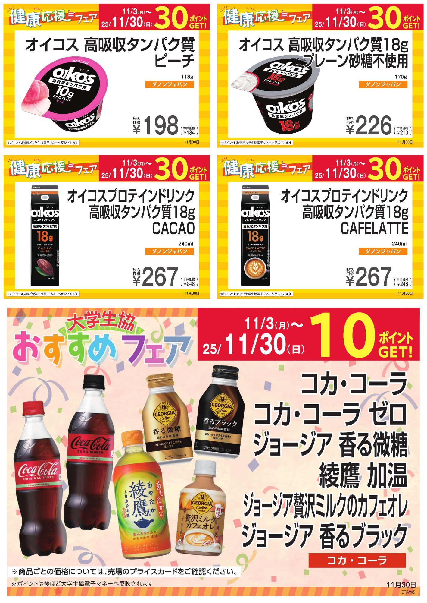 大学生協電子マネーを使ってオトクにお買い物!※ ポイントGETは大学生協電子マネーで決済の場合に限ります。