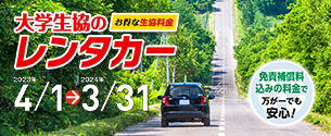 お得な生協料金のレンタカー&特典つきカーシェアのご案内です。
