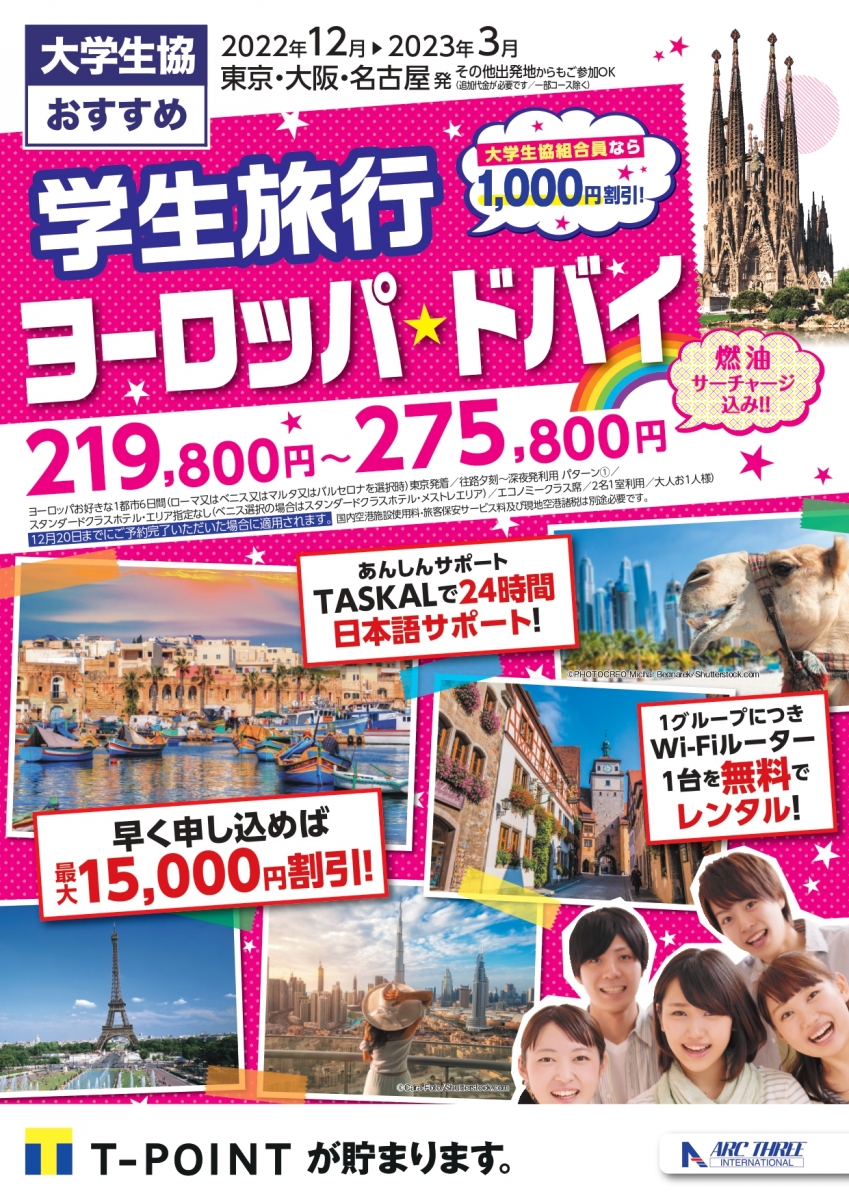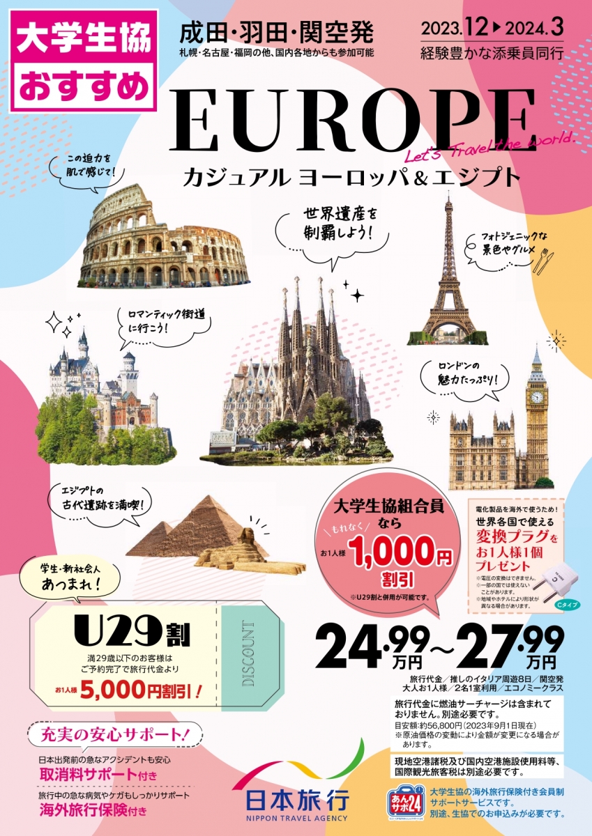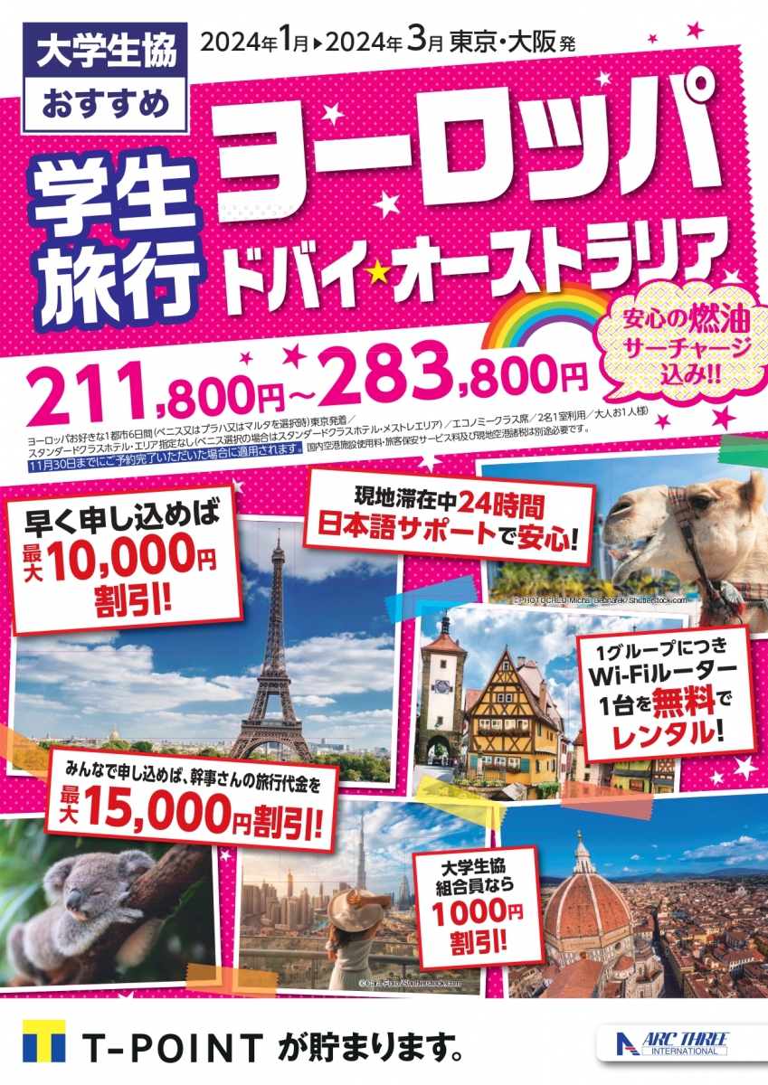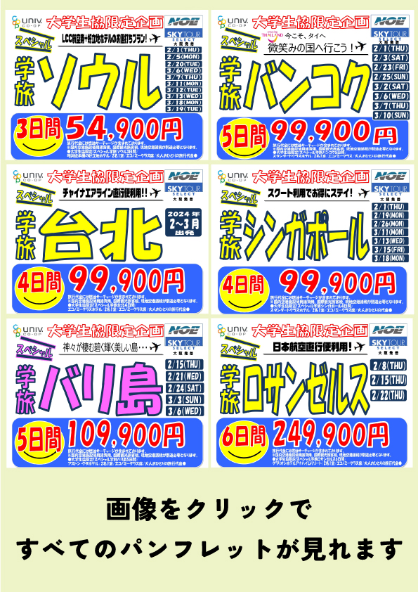 おすすめパッケージツアー・大学生協オリジナル企画などをご紹介します!