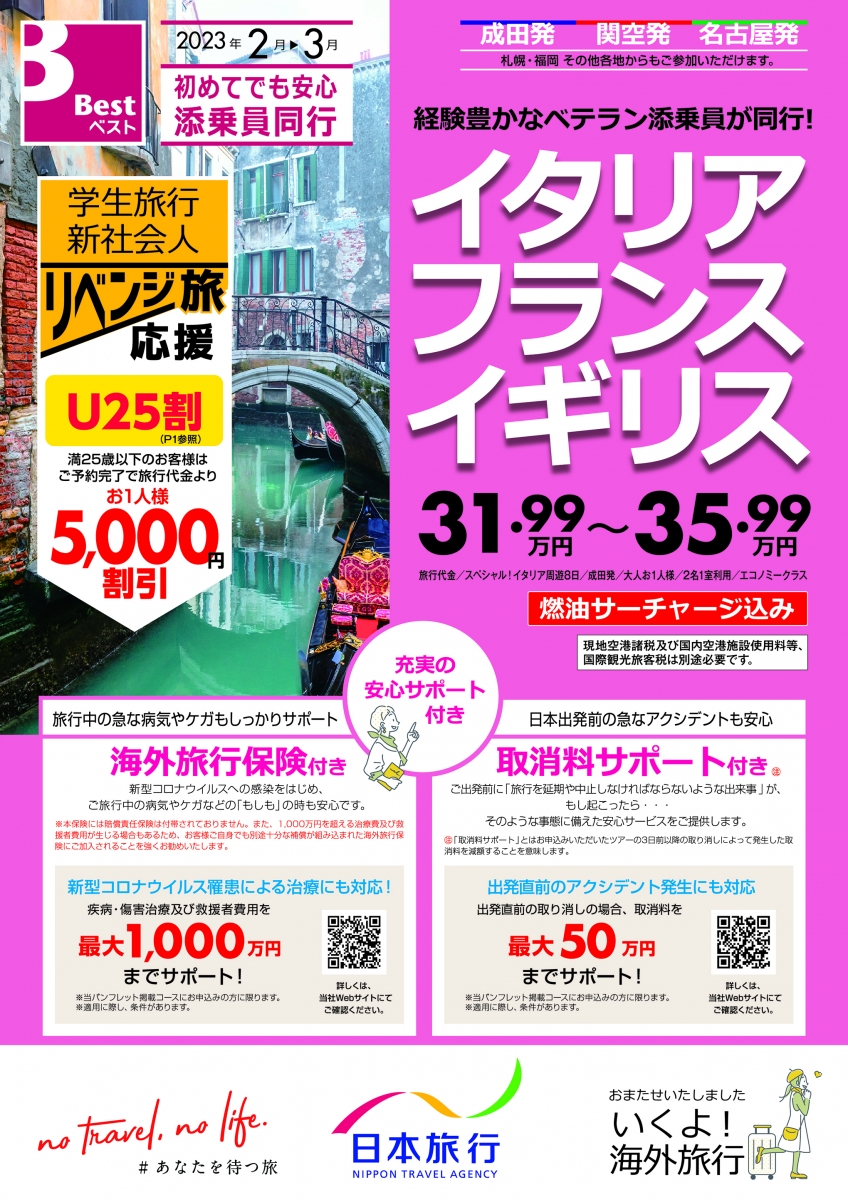 2026年1月~3月出発 JTBガクタビヨーロッパが発売!