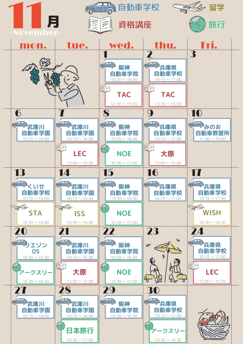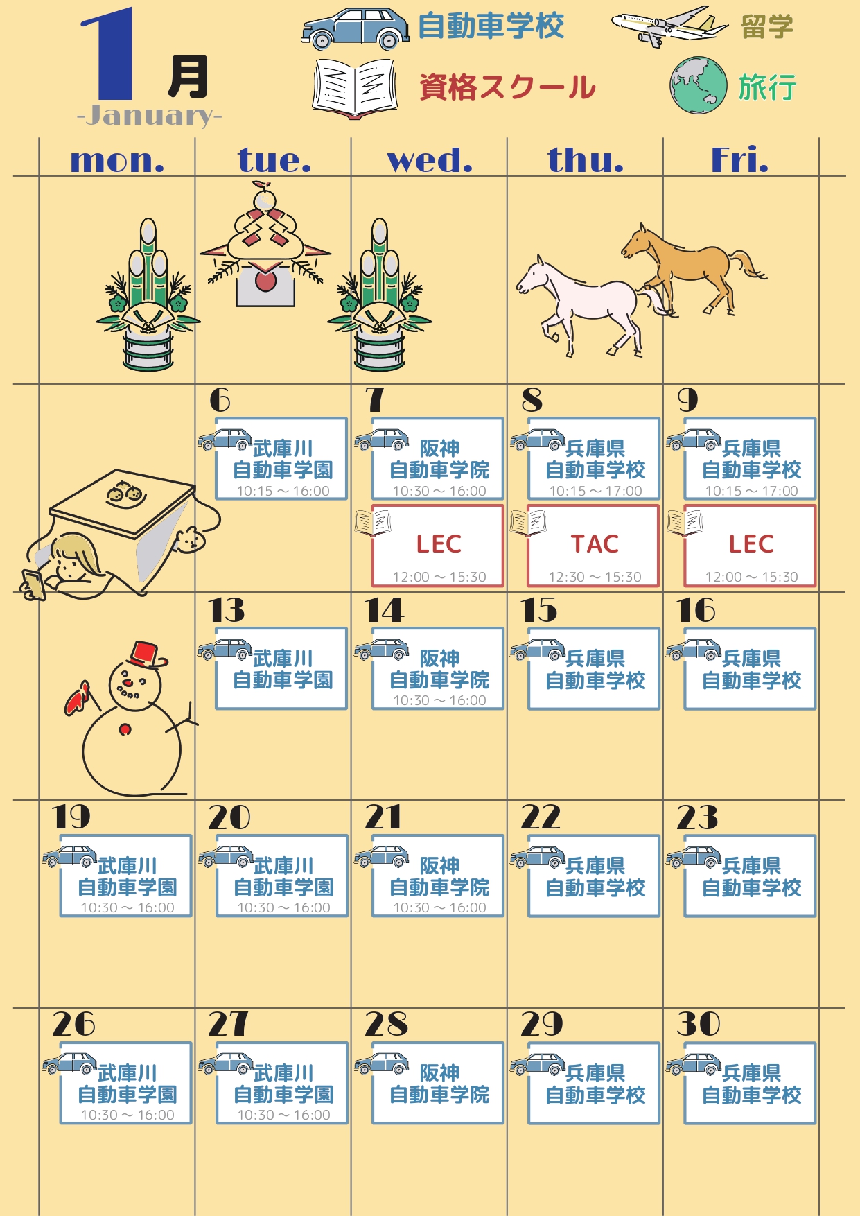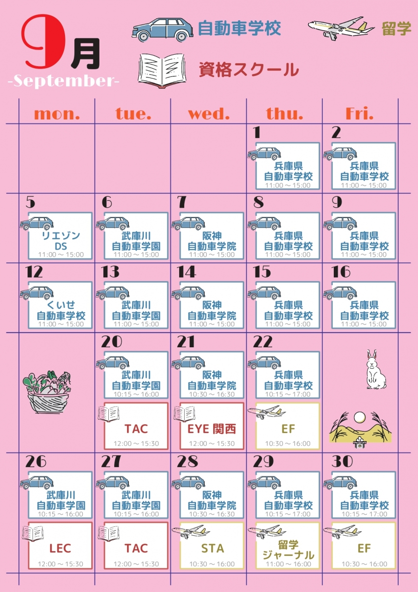 自動車学校は長期休暇中も含めて原則毎日、資格スクール・語学留学は授業シーズンに、日替わりで相談会を開催しています。参加無料・予約不要なので、どなたでもお気軽にご参加ください!